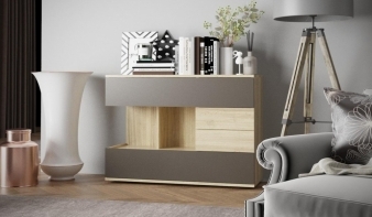 Современные комоды обычно состоят из не одного, а нескольких горизонтально расположенных ящиков, возможно наличие открытых полок и небольшой тумбы.
