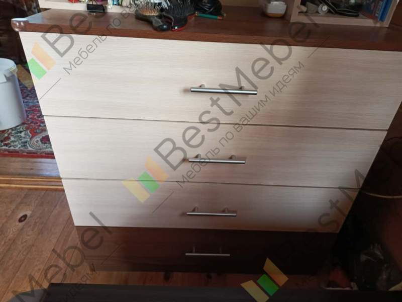 Заказ 00000154258, изделие Комод Эвелин BMS (900х900х460).Очень удачный вариант комода. 4 ящика - хватит всем членам семьи , чтобы разложить вещи. Получилось подобрать размер и цвет под "угол" на даче. Бюджетно и добротно. Из минусов - острые углы, обязательно добирайте накладки. В остальном рекомендую, мебель удобная. Даже с простейшей фурнитурой пока проблем нет.