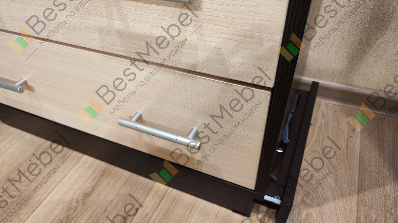 Всем доброго времени суток! Случайно наткнулся на этот комод и эту компанию во время поиска мебели в интернете, искал себе что-то похожее на "шкаф-комод". Очень зацепило, то что прямо на сайте можно выбирать многие размеры и параметры мебели. А в 3D режиме смотришь как будет выглядит мебель в разных расцветках. Определился с размерами и параметрами, разместил Заказ 00000353924. Через 10 минут со мной уже связался менеджер, уточнил параметры которые я немного изменил, уточнил адрес и уже назначил доставку на 4 день, что меня очень удивило, так как мебель под индивидуальные параметры обычно изготавливается гораздо дольше. Доставка до подъезда бесплатная, что очень тоже порадовало.Теперь о негативном.1. Негатив начинается уже со сборки. Отсутствует схема сборки, в моем случае был только чертеж, без каких либо параметров(просто картинка мебели). Но наклейки на каждой детали мебели, компенсируют отсутствие схемы.2. "Пакет с фурнитурой" - это конечно прикол... все саморезы(разных размеров), винты, гвозди и тд, всё это в одной куче, я уже не говорю о том что нигде не указано, какой и куда предназначается, но то что при сборке теряешь до 30 минут времени что бы перебрать всю фурнитуру по кучкам и по пакетикам, что бы облегчить потом поиски при сборке... Ну неужели пакетики такие дорогие, что бы разделить это всё?После завершения сборки мебели, в моём варианте исполнения, обнаружилось несколько проблем.1. Так, как я заказал с изменением конструкции, со шкафом в верхней части комода и общая высота 1650, от веса начали разъезжаться стойки на 1-2мм в сторону, из-за чего начали выпадать из рельс центральные выдвижные ящики. Спустя 1.5-2 недели, мне бесплатно довезли две царги для стяжки, которые я установил в центральную часть комода и проблема ушла.2. Заказал два выдвижных ящика с дополнительными разделёнными ячейками(6 ячеек). Их можно выбрать прямо с сайта, во время конфигурации мебели. Две дальние ячейки практически не доступны, так как ящик выдвигается не до конца, остается доступ к ячейкам в 3-4 сантиметра. Считаю это технический недочет проектировщиков. Что бы это исправить мне предложили либо переделать полностью ящики за мой счёт с немного другим расположением ячеек, либо докупить специальные направляющие с полным выдвижением. Тут я конечно удивился, что этот косяк повесили на меня. Потому что на сайте нет ни какой информации, схем и чертежей на этот счет, как это будет выглядеть изначально не мог знать и даже не предполагал что такое может быть. Ящики так и остались неисправленными, пользуюсь пока так.3. Дверцы шкафчика. После регулировки, с каждой стороны имелся зазор почти в 5мм, что очень выглядело нелепо. Щели такие что можно было разглядеть содержимое шкафа. Долго спорил с гарантийным отделов, в итоге признали гарантийным случаем и поменяли дверцы бесплатно. Новые дверцы, каждая шире на 2-2.5мм, в итоге отрегулировал на стандартный зазор в 3мм.4. Пол шкафчика. На чертеже не разглядел, что он утопленный, по отношению фасада выдвижных ящиков и шкафчика дверей, а фасад не укрывает эту щель. Это смотрелось очень не красиво, в связи с этим мне пришлось докупать отдельно эту деталь, которая стоила дополнительно 850р. Косяк признали за мной, так как я не разглядел чертеж, несмотря на то, что на сайте выглядит это по другому.Так же забыли положить подпятники, но их довезли вмес