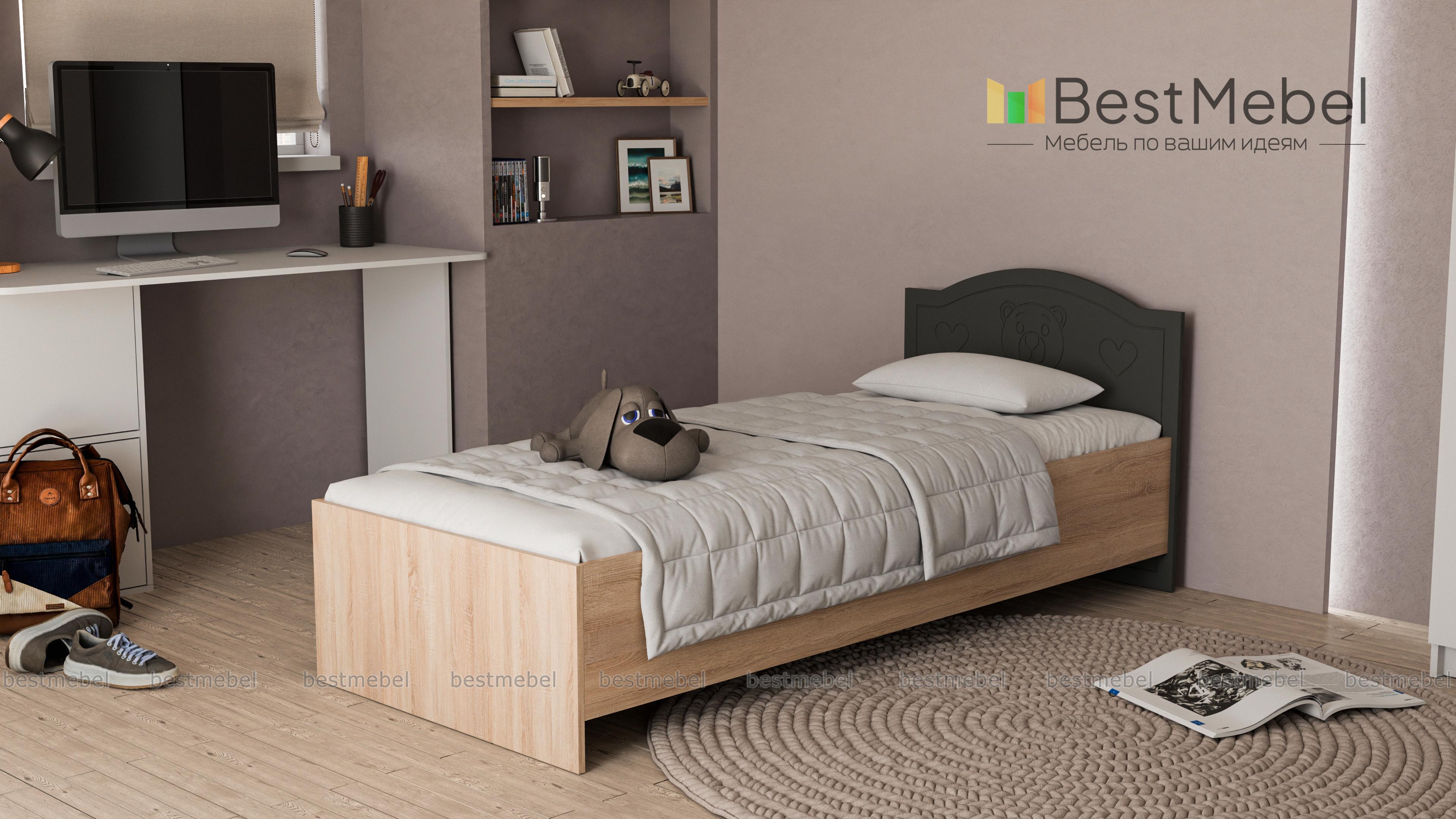 Кровать Мишка Вальтер BMS – романтичная модель для маленькой принцессы. Светлые пастельные тона и удобное основание подарят ребенку сладкие ванильные сны. Изюминкой изделия является оригинальный дизайн изголовья, украшенного мордочкой очаровательного медвежонка. По желанию заказчика кровать может быть дополнена выдвижными ящиками для белья или бортиком. А в комплекте с симпатичной тумбочкой в аналогичном стиле данная модель покорит сердца даже самых капризных принцесс. Купить кровать Мишка Вальтер BMS по минимальной цене можно на нашем интернет – портале.