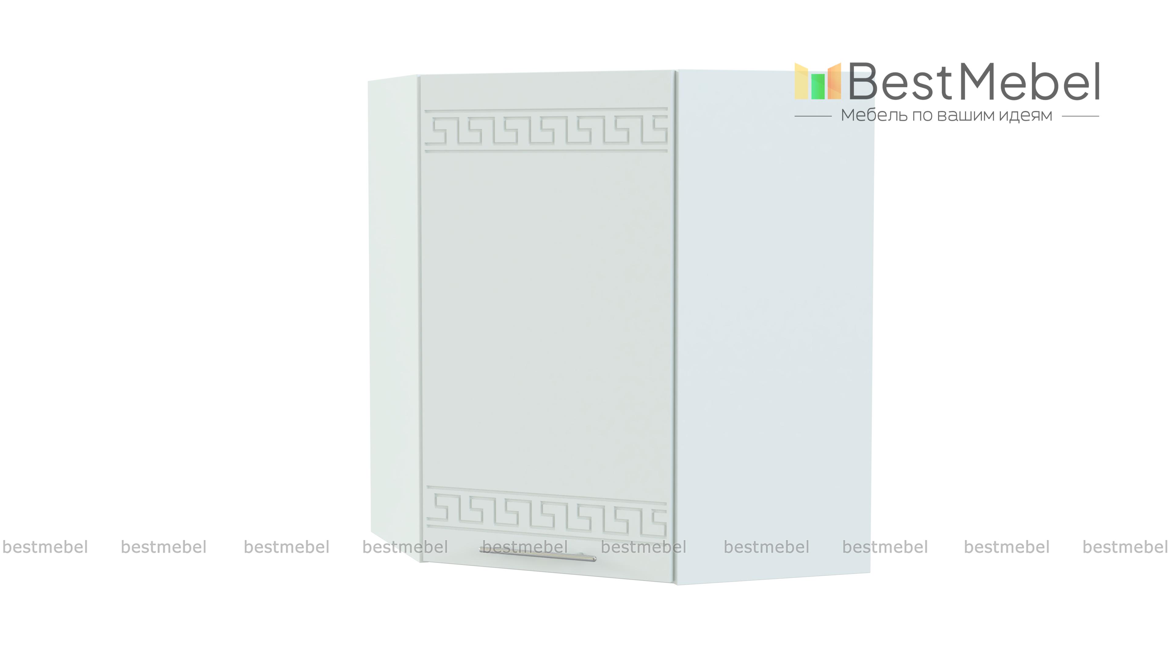 Шкаф навесной угловой 590 Греция BMS незаменим в комплекте Г-образной формы и служит для соединения модулей верхнего ряда. Компактный внешне, шкаф выгодно использует угловое пространство. За глухой распашной дверцей – просторное отделение с полкой для хранения кухонных принадлежностей. Фасад, выполненный в белом матовом оттенке, украшен орнаментом и отличается устойчивостью к влаге, механическим повреждениям и простотой ухода. Купить шкаф навесной угловой 590 Греция BMS по демократичной цене вы сможете в нашем интернет-магазине.