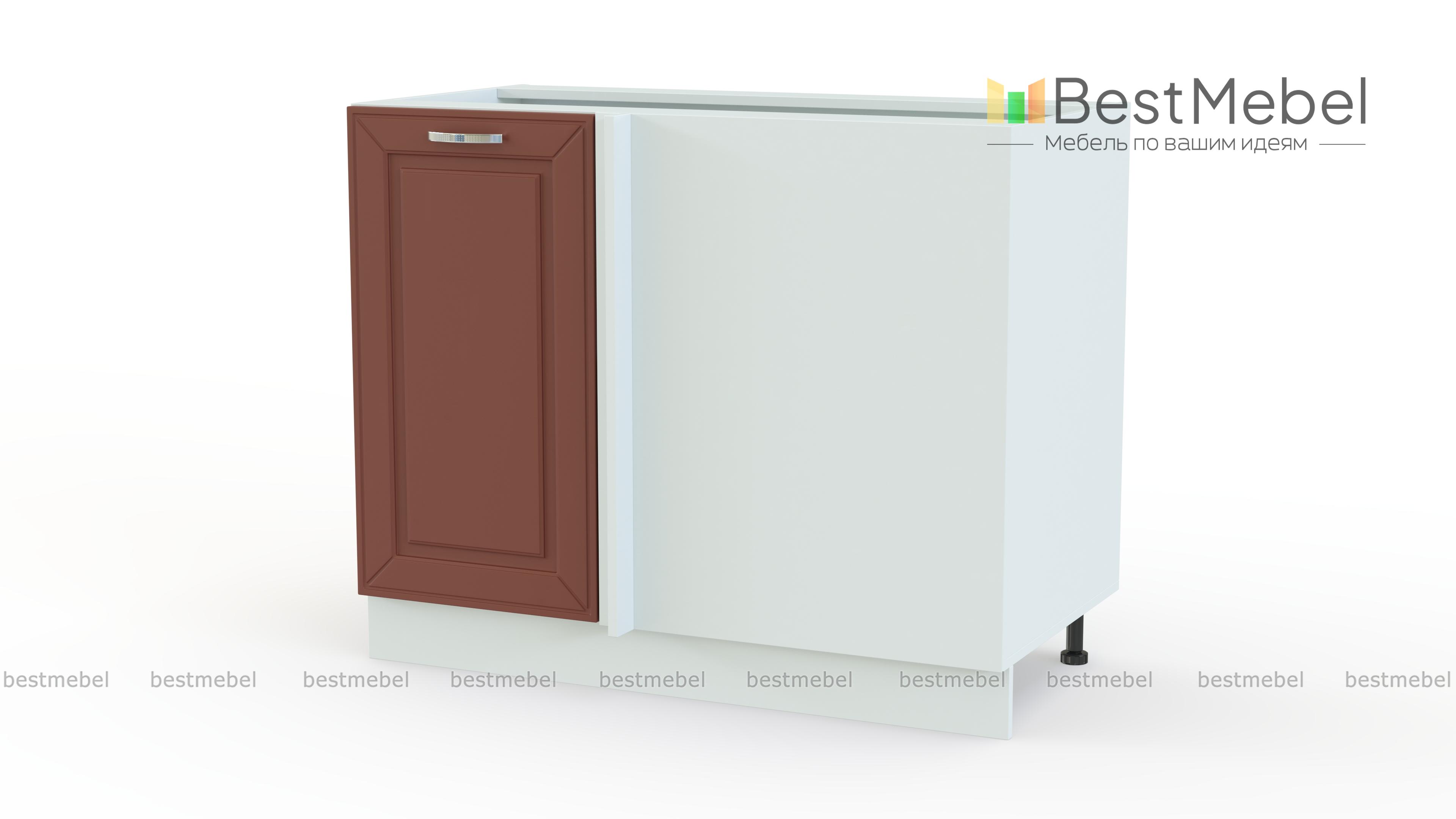 Стол угловой Маргарита BMS выполняет роль стыковочного элемента в модульных гарнитурах Г-образной формы. Прямая модель оборудована с фронтальной стороны глухой стенкой и распашной дверцей с фрезерованным фасадом в стиле прованс. Просторное внутреннее отделение с полкой отлично подходит для размещения габаритной кухонной утвари, устойчивость конструкции обеспечат регулируемые пластиковые опоры. Купить стол угловой Маргарита BMS с учетом необходимых параметров приглашаем в наш интернет-магазин.