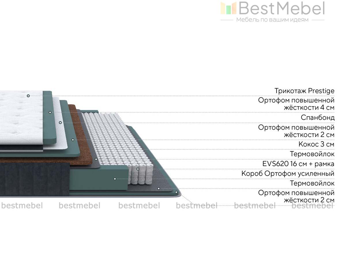 Состав: Ортофом (ППУ) повышенной жесткости 4 см \ Ортофом (ППУ) повышенной жесткости 2см \ Кокос 3см \ Термовойлок \ EVS620 16см \ рамка к ПБ \ Термовойлок \ Ортофом (ППУ) повышенной жесткости 2см \ Короб усиленный (ВППУ).