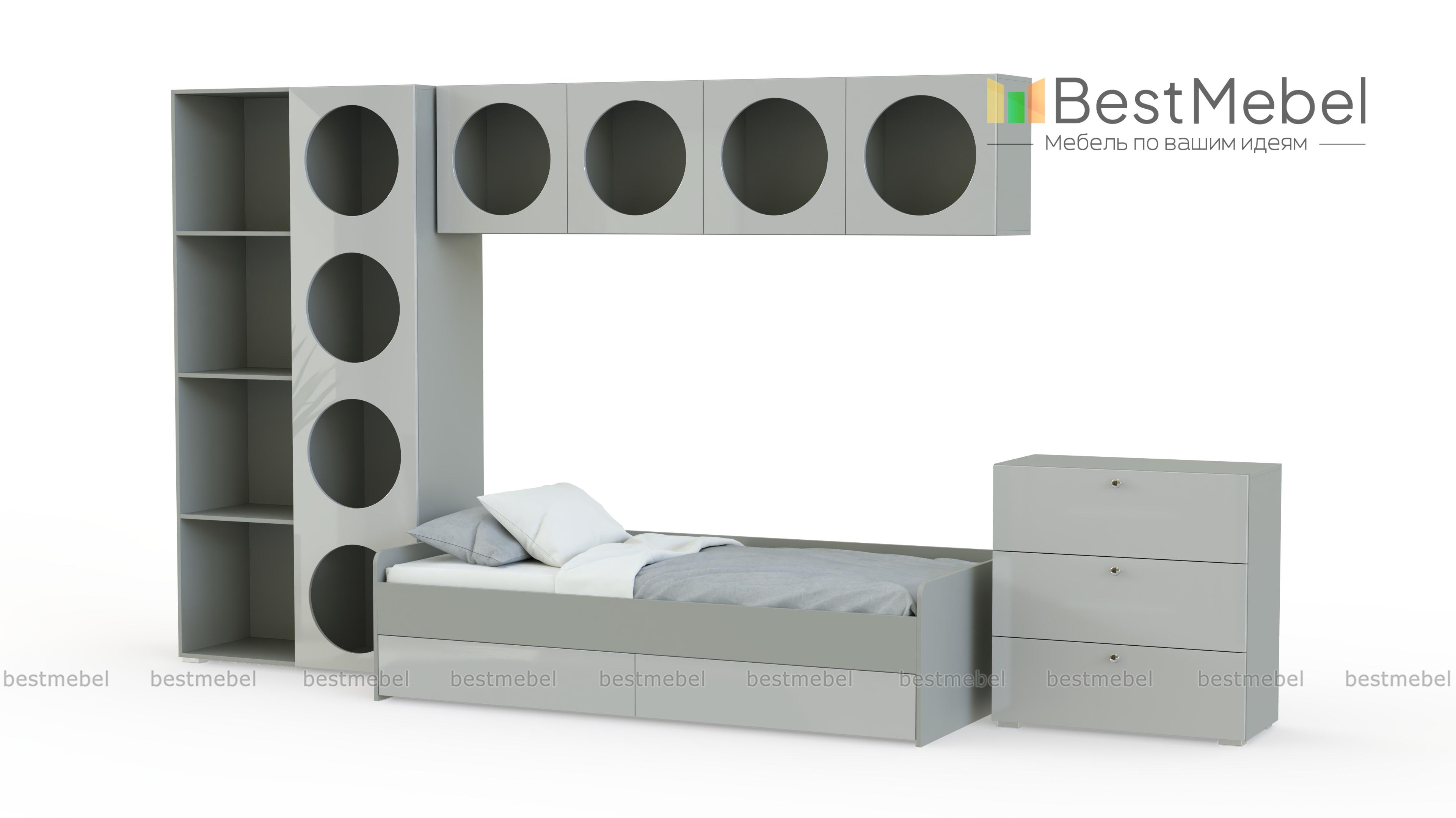 Детская комната Авелин 1 BMS — функциональная и отражающая потребности ребенка. Практичность каждого предмета композиции сочетается с креативным дизайном, качеством и безопасностью. Открытая система хранения для книг, любимых аксессуаров и школьных принадлежностей дополнена бельевым комодом, а еще больше места позволяют получить выкатные ящики под кроватью. Купить детскую комнату Авелин 1 BMS с учетом необходимых размеров вы сможете на сайте нашего интернет-магазина.