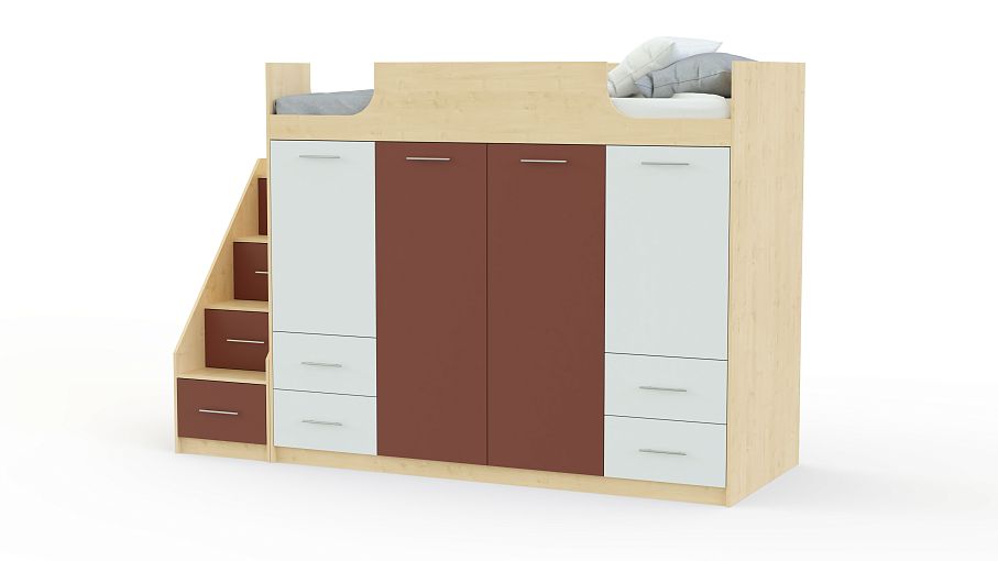 Кровать-чердак Симо 2 BMS – это не только комфортное спальное место, но и продуманная система хранения, которая поможет легко поддерживать в детской порядок. Расположенная на втором ярусе кровать оборудована защитным бортиком и дополнена лестницей-комодом с вместительными ящиками под ступеньками, а первый ярус занимают распашные отделения с полками и штангами и выдвижные ящики для игрушек или постельного белья. Купить кровать-чердак Симо 2 BMS приглашаем в наш интернет-магазин, подобрав цветовое решение.