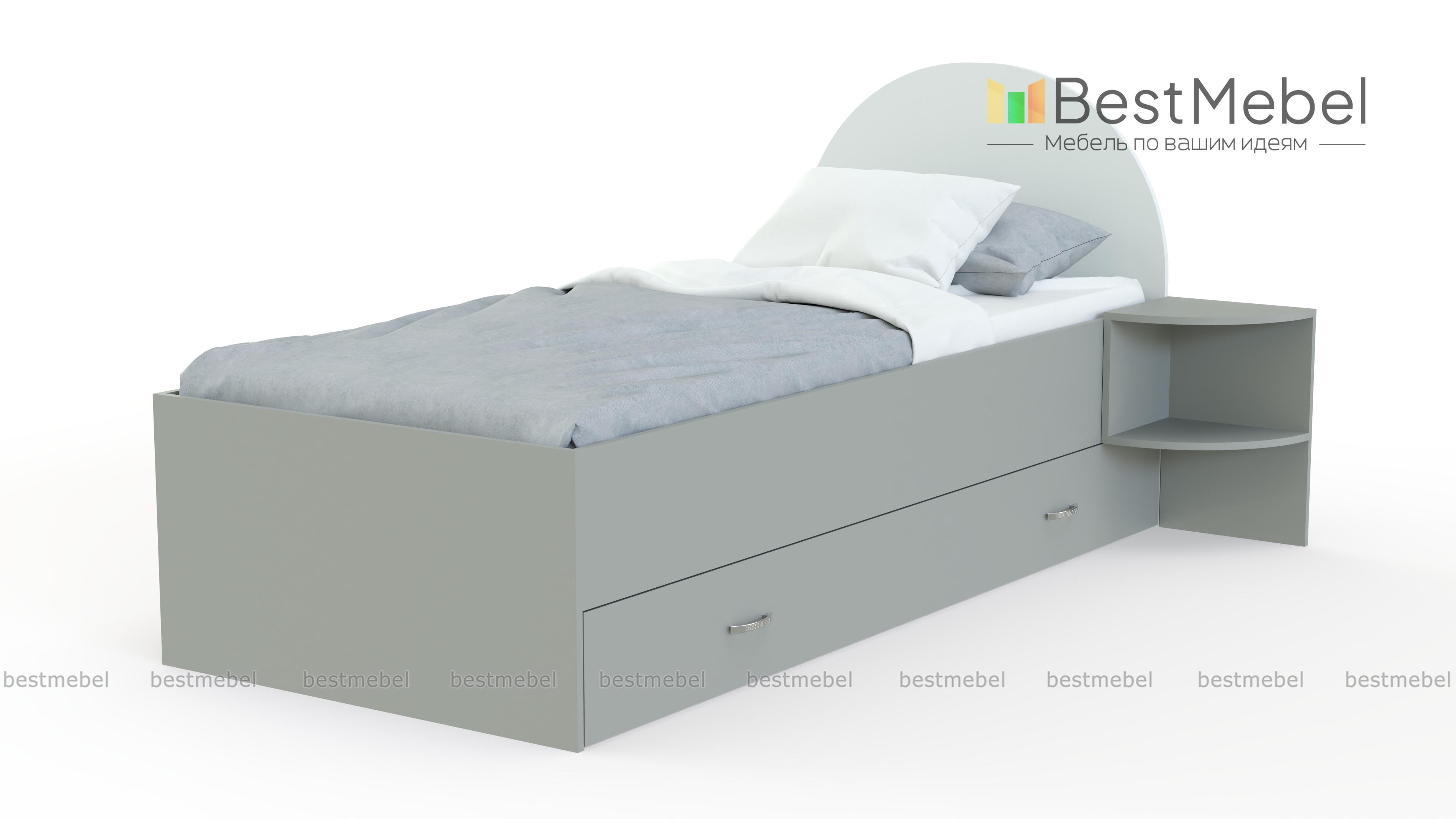Кровать Princess BMS поможет обустроить уютную комнату для девочек. Современная модель с просторным спальным местом без спинки в изножье оборудована скругленным изголовьем и выполнена в сочетании светлых тонов и аквамаринового. Разместить под рукой необходимые мелочи поможет приставная тумба из пары открытых полок, а для постельного белья предусмотрен широкий ящик в основании. Купить кровать Princess BMS для изящного сказочного интерьера приглашаем в наш интернет-магазин.