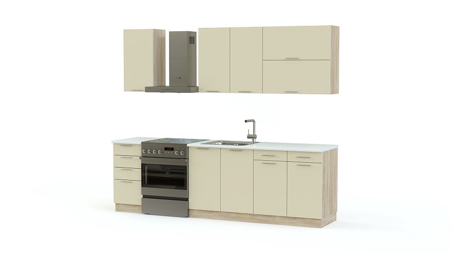 Модель выполнена в классическом стиле и подойдет к любому дизайнерскому оформлению помещения, тем более, что цвета Вы можете выбрать самостоятельно. Кухня Базис Эко 07 BMS имеет две большие тумбы, одна из них предназначена под мойку, и небольшой кухонный комод. Сверху расположены навесные шкафы: один небольшой, большой шкафчик классического стиля и современный шкафчик с открыванием вверх двух отделений. Нижняя часть объединена общим основанием. У нас Вы можете купить кухню Базис Эко 07 BMS, увеличив при заказе параметры.