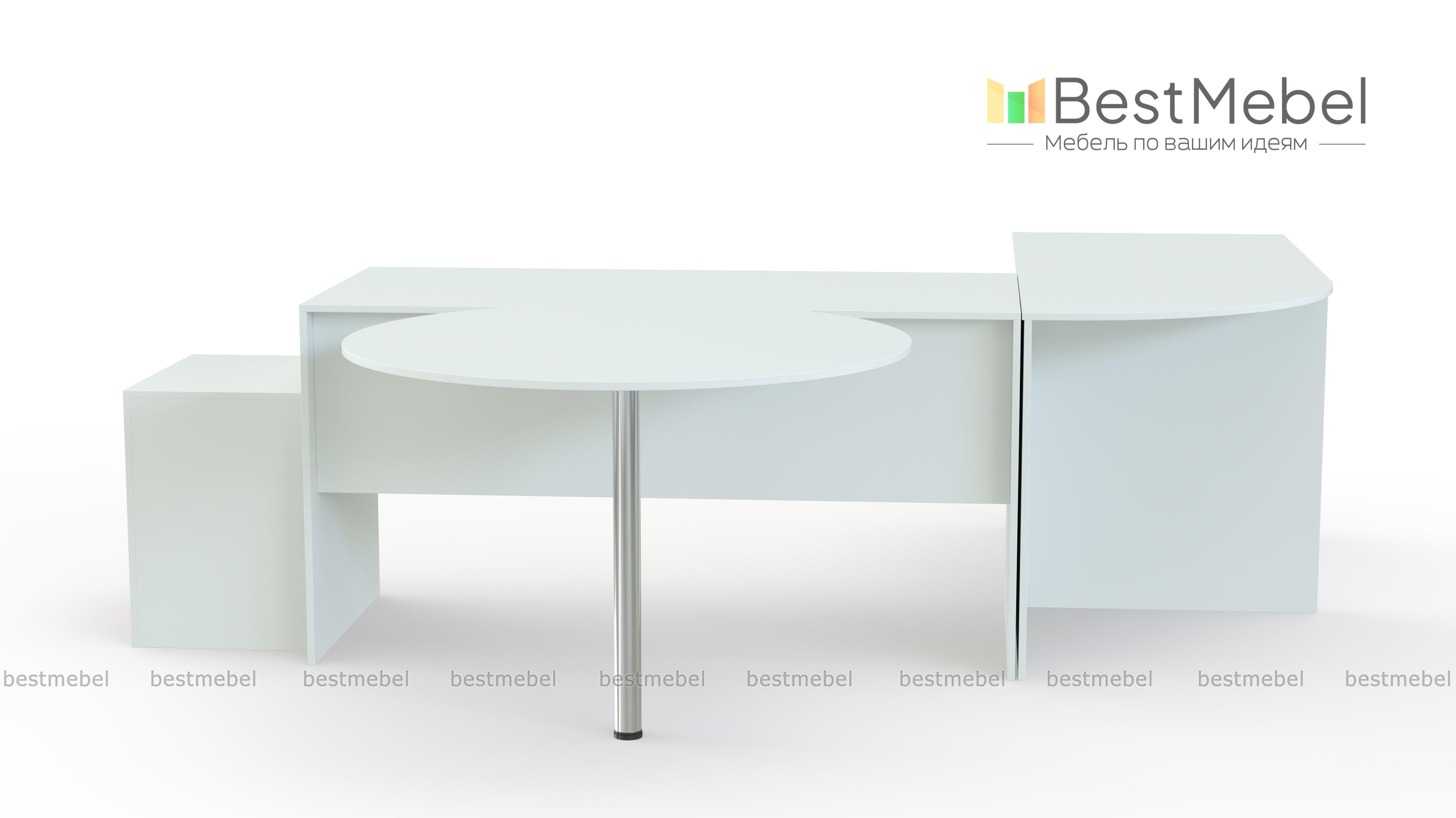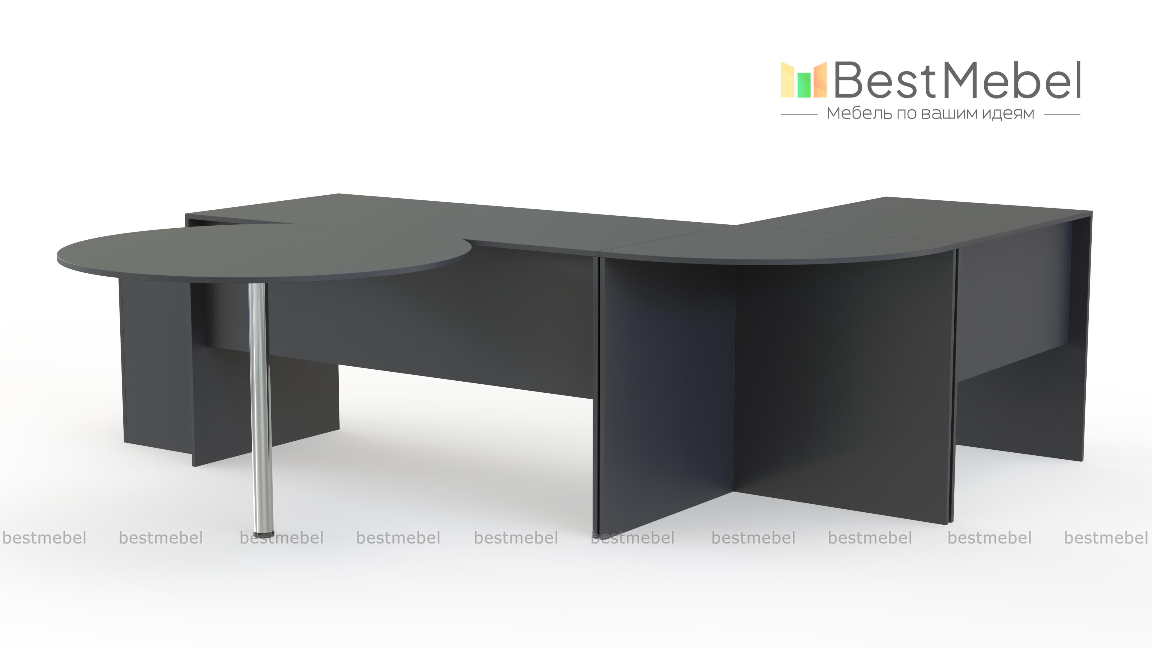 Офисный комплект Uno № 4 BMS – простое и оригинальное решение для кабинета руководителя. Классический прямой письменный стол дополнен тремя приставными – угловым, миниатюрным прямоугольным и круглым на металлической опоре. Продуманная конструкция позволит сделать рабочее совещание максимально комфортным для всех участников. Традиционные древесные оттенки тонов создадут спокойную, деловую обстановку. Купить офисный комплект Uno № 4 BMS по демократичной цене приглашаем в наш интернет-магазин.