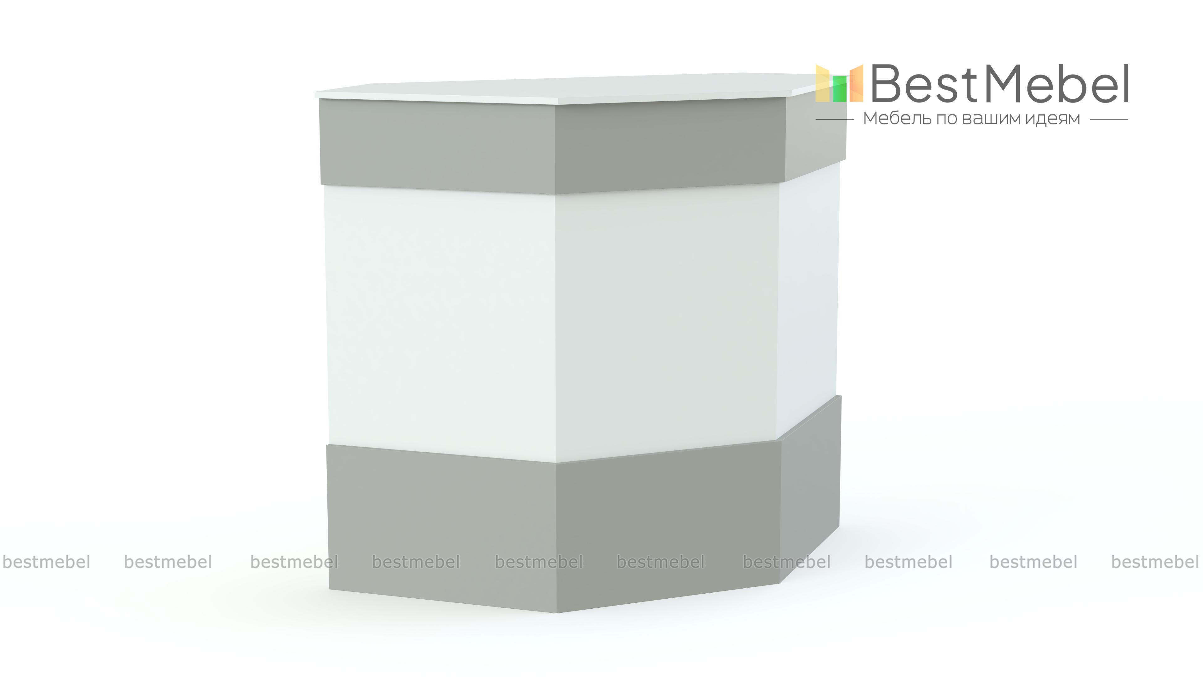 Ресепшен Рейна № 3 BMS – это угловой модуль в форме трапеции, который легко комбинируется с прямыми секциями серии для создания комфортного рабочего места. Стойка оборудована двумя просторными столешницами – внешней, для посетителей, и внутренней, для администратора. Выполненная в универсальном белом цвете, модель декорирована по фасаду горизонтальными планками контрастного серого цвета. Купить ресепшен Рейна № 3 BMS вы сможете в нашем интернет-магазине по доступной цене.