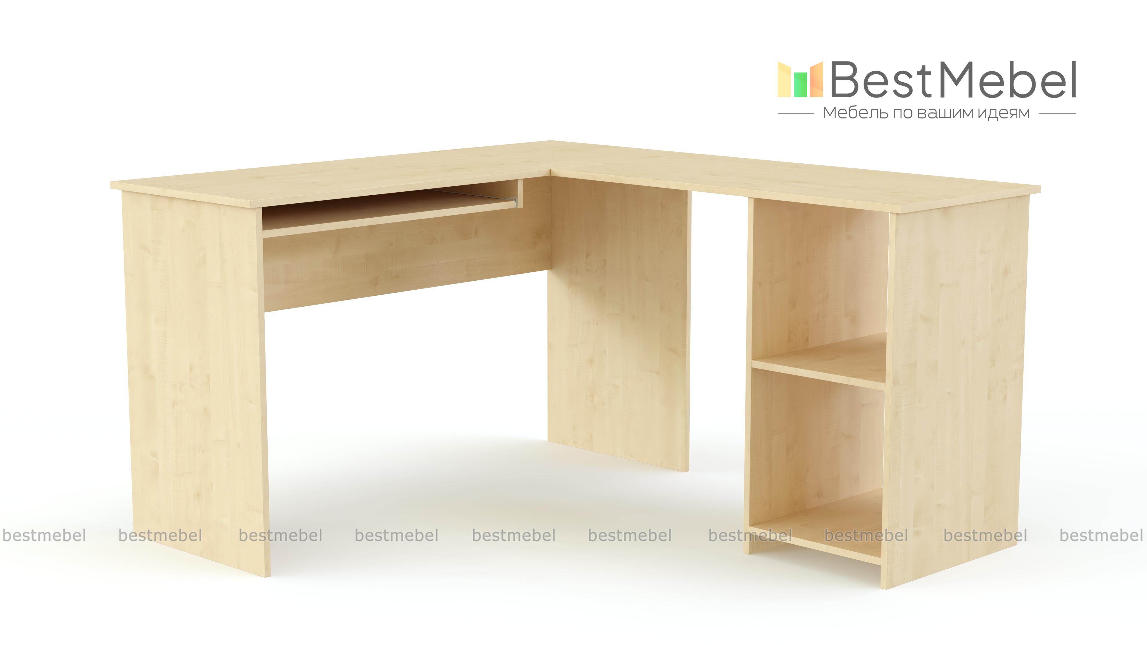 Угловой стол Diego BMS состоит из двух столешниц, расположенных под прямым углом друг к другу. На одной из них удобно работать на компьютере, для клавиатуры предусмотрена выдвижная панель. Другая часть столешницы интегрирована с двумя открытыми полками. Модель может стать удачным решением обустройства офисных помещений небольшой площади, хорошо будет смотреться в молодежной комнате. Возможны многочисленные варианты расцветки мебели. Один из них вы можете выбрать на нашем сайте и заказать с выгодной скидкой стильный стол Diego BMS с бесплатной доставкой.