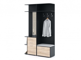 В зависимости от модели, прихожая для верхней одежды может содержать разнообразное количество полок для обуви и аксессуаров, ящиков для необходимых мелочей, а также разнотипных вешалок. Зачастую даже при наличии удобного шкафа не обойтись без открытой панели с крючками, особенно актуальной в дождливую и сырую погоду. Важным, но отнюдь не обязательным компонентом в этом случае является зеркало в полный рост.