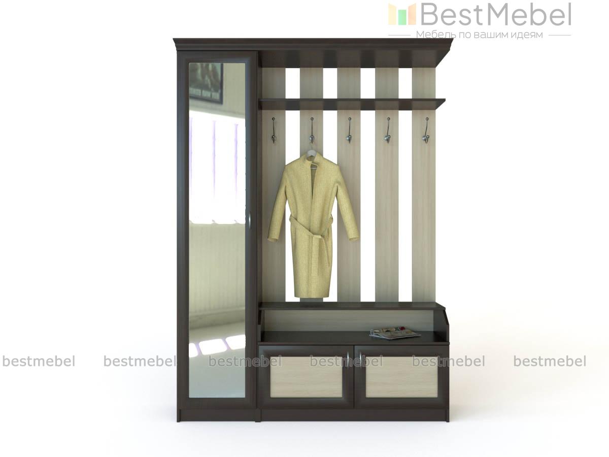 Прихожая Алиса 1.1 BMS предназначена для небольших помещений и гармонично сочетает классические и современные черты. Композиция объединила распашной шкаф для одежды с незаменимым для примерок зеркальным фасадом и секцию с открытой вешалкой, полкой под головные уборы на хромированных опорах, нишей и вместительной обувницей закрытого типа. Рамочные фасады в контрастных древесных тонах дополняет элегантный карниз. Купить прихожую Алиса 1.1 BMS по доступной цене приглашаем к нам в интернет-магазин.