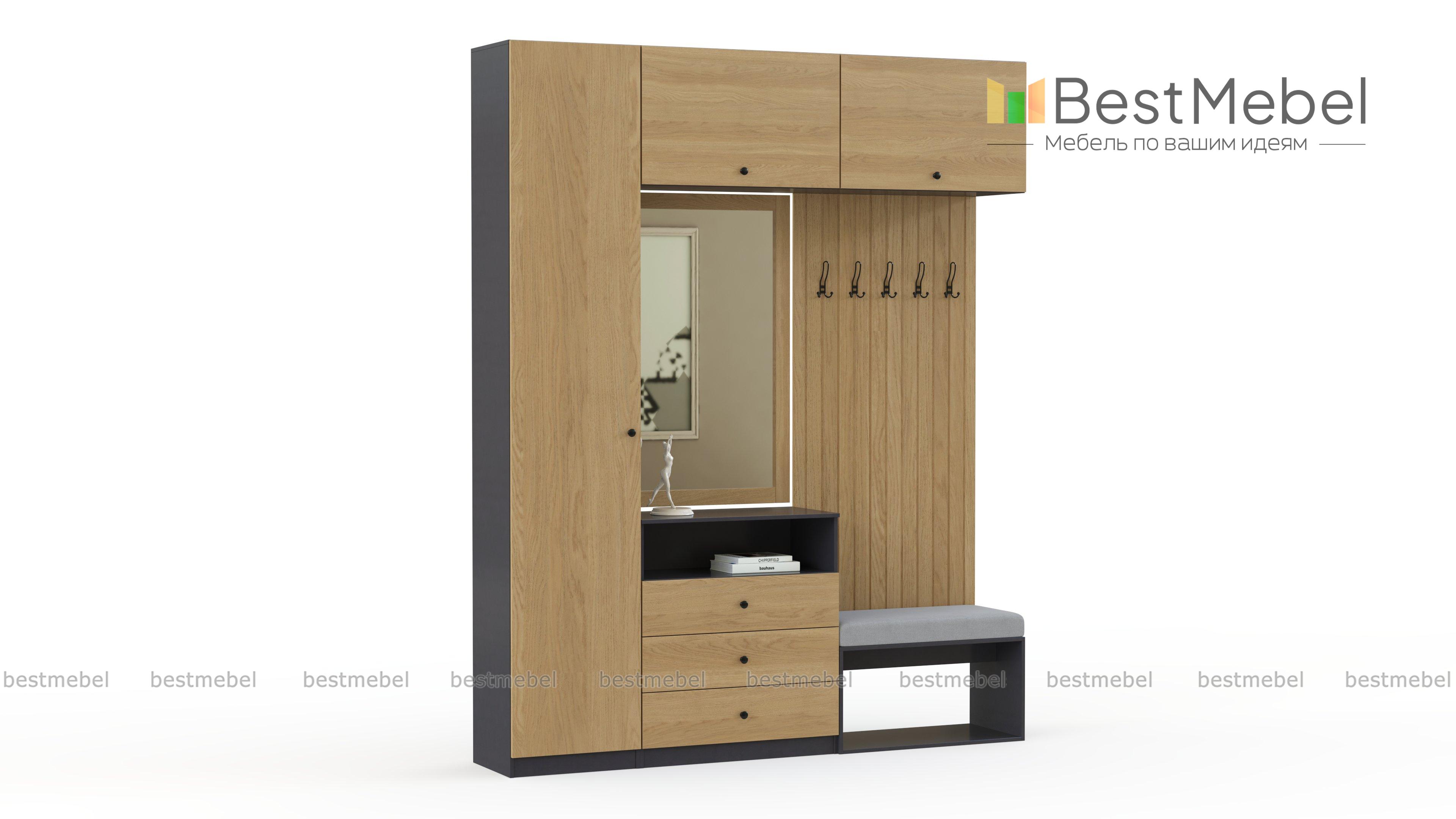 Прихожая Далис 12 BMS привлекает миксом темных гладких фасадов с теплой древесной фактурой корпуса. Необычная цветовая гамма придает интерьеру индивидуальность и создает атмосферу комфорта. Модульная композиция состоит из пенала, двух навесных шкафов, тумбы с выдвижными ящиками и нишей, зеркала, открытой обувницы и рельефной панели с крючками. Купить прихожую Далис 12 BMS с выбором необходимых размеров вы сможете на сайте нашего интернет-магазина.