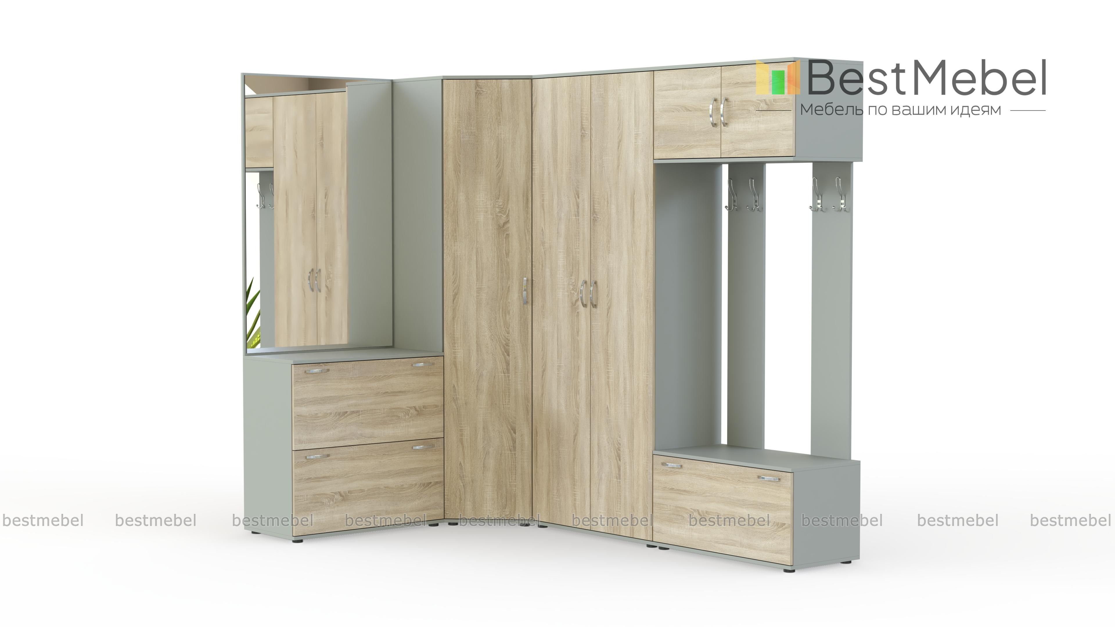Прихожая Севара 13 BMS привлекает внимание оригинальным современным дизайном и продуманной комбинацией модулей. Угловая композиция включает в себя распашные шкафы для одежды с полками и штангой, секцию с зеркалом и тумбой и открытую вешалку с распашной антресолью и обувницей. Эффектные матовые фасады модели износостойки, просты в уходе и надолго сохранят эстетичный вид. Купить прихожую Севара 13 BMS, которая поможет разместить большое количество вещей и украсит домашний интерьер, приглашаем в наш интернет-магазин.
