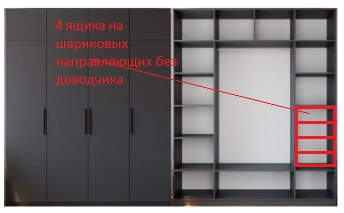 Шкаф Виллета 8 дополнен выдвижными ящиками, без ручек, открывается от нажатия, оснащен штангой овал в отделе платье и вместительными полками в бельевом отделении.