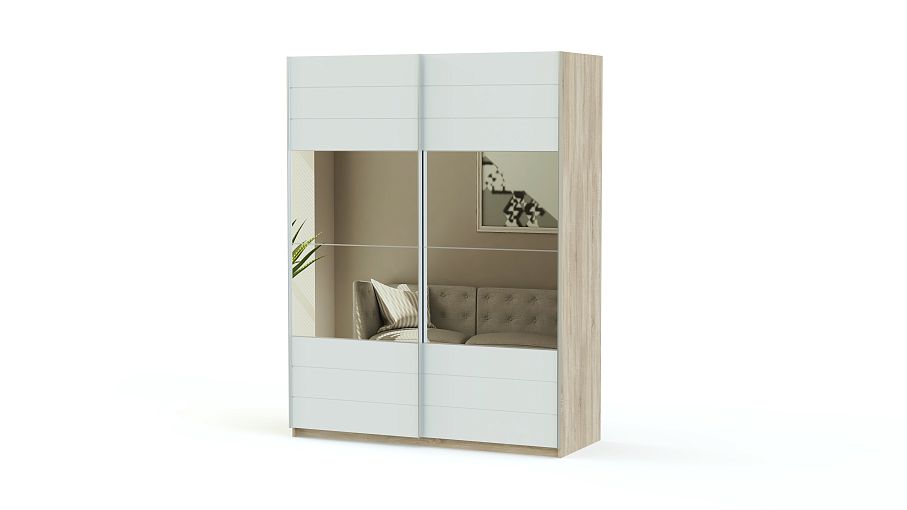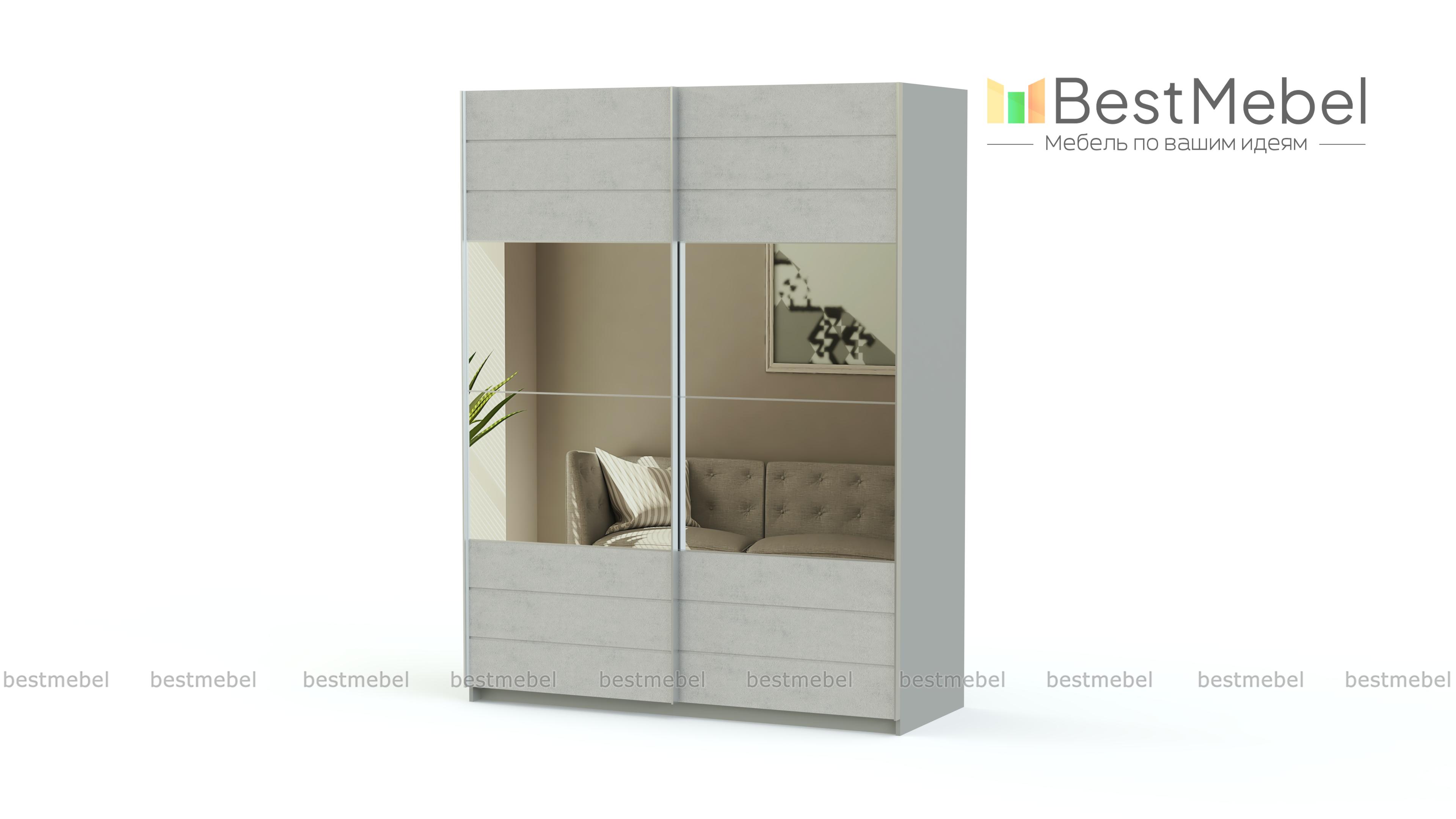 Широкий вместительный шкаф-купе Remo BMS отличается современным дизайном и продуманной системой хранения, которая позволит без труда разместить ваш гардероб, разгрузив другие помещения. Внутреннее наполнение модели включает в себя целых три отделения – два комбинированных со штангами для плечиков с одеждой и одно с полками. Практичные раздвижные двери шкафа-купе выполнены из качественных, устойчивых к повреждениям материалов в светлом оттенке и декорированы большим зеркалом.