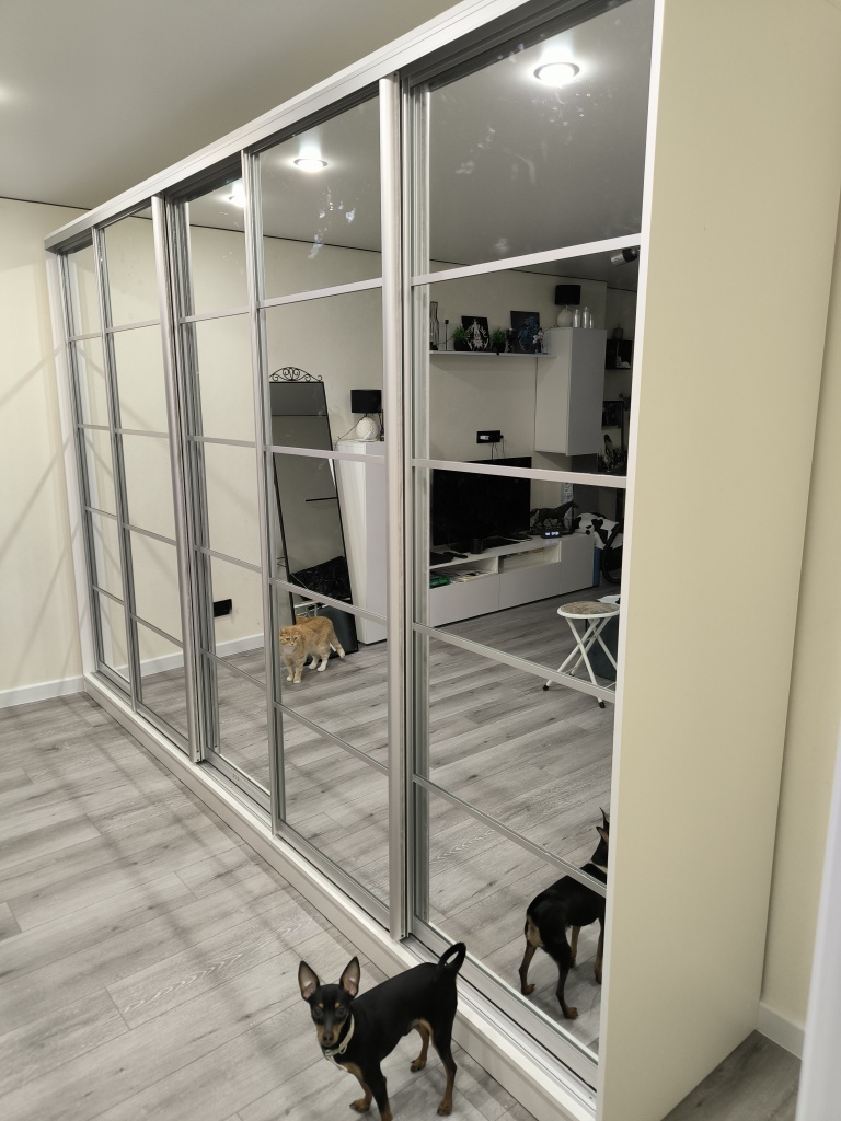 Вместительный шкаф-купе для большой и дружной семьи. Оригинальный и стильный дизайн изделия позволит ему гармонично влиться в интерьер любой комнаты, будь то гостиная, спальня или прихожая. Конструкция шкафа предусматривает вместительные полки разного размера и отделения со штангами для одежды на вешалках. При заказе на сайте можно выбрать цвет изделия и профиля из предложенных вариантов. Качественная алюминиевая профильная система обеспечивает легкое скольжение для бесшумного открывания. Организуйте аккуратное и компактное хранение вещей, купив шкаф-купе по доступной цене на нашем сайте.
