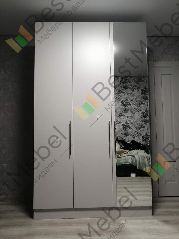 Немногие сайты позволяют полноценно конфигурировать параметры шкафа. В БестМебели всё с этим в порядке. Заказали с зеркалом со скошенными краями - более плавный переход от стекла к панели. Привезли, подняли на наш этаж. Детали выпилены ровно, без замечаний, кромка 2мм прилегает плотно. Воспользовались услугой "сборка" - два бравых хлопца менее чем за час установили этого красавца, подмели и подготовили упаковочный материал к выносу. Респект. Недорого и качественно.