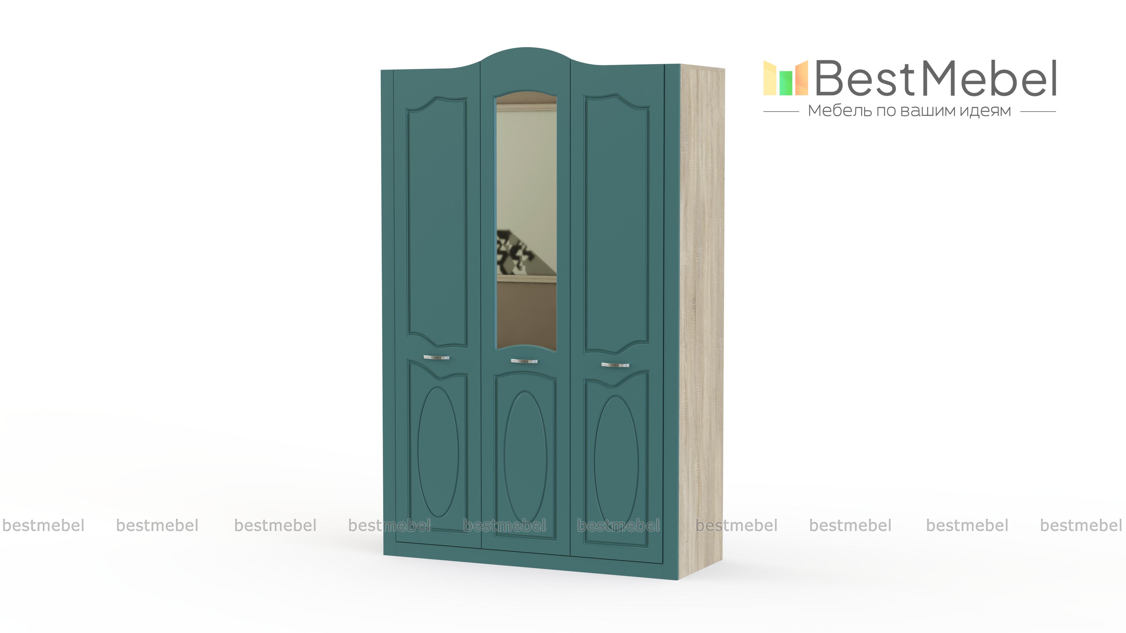 Шкаф 3-х дверный Ева BMS понравится поклонникам легких и светлых классических интерьеров. Изящная модель с фигурно вырезанными дверцами декорирована неброской фрезеровкой, зеркалом и элегантными ручками. Удобно разместить одежду, обувь и аксессуары помогут платяное отделение со штангой и вместительные полки. Простая и надежная конструкция будет радовать хозяев и гостей дома долгие годы. Купить шкаф 3-х дверный Ева BMS, подобрав оптимальный вариант расцветки, вы сможете в нашем интернет-магазине.
