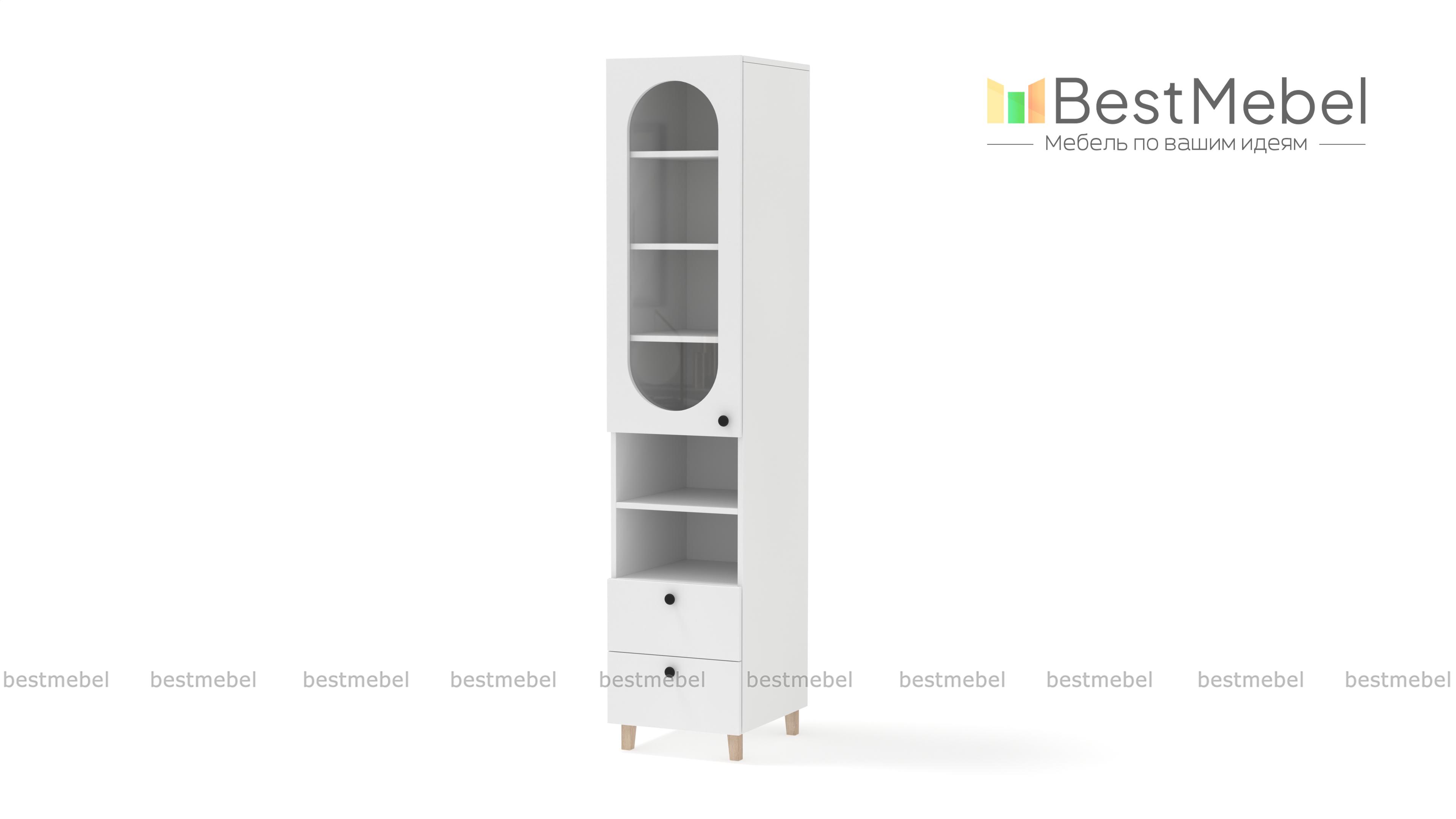 Шкаф-пенал Рене 3 BMS с витриной будет востребован в гостиной, детской комнате или столовой. Остекленное отделение, две открытые секции и два ящика позволят разместить на виду необходимые вещи и предметы декора, навести порядок в мелочах. Конструкция с высокими ножками визуально легкая, универсальный светлый фасад украшает овальный вырез. Купить шкаф-пенал Рене 3 BMS приглашаем в наш интернет-магазин с выбором размеров, фурнитуры и цвета по каталогу.