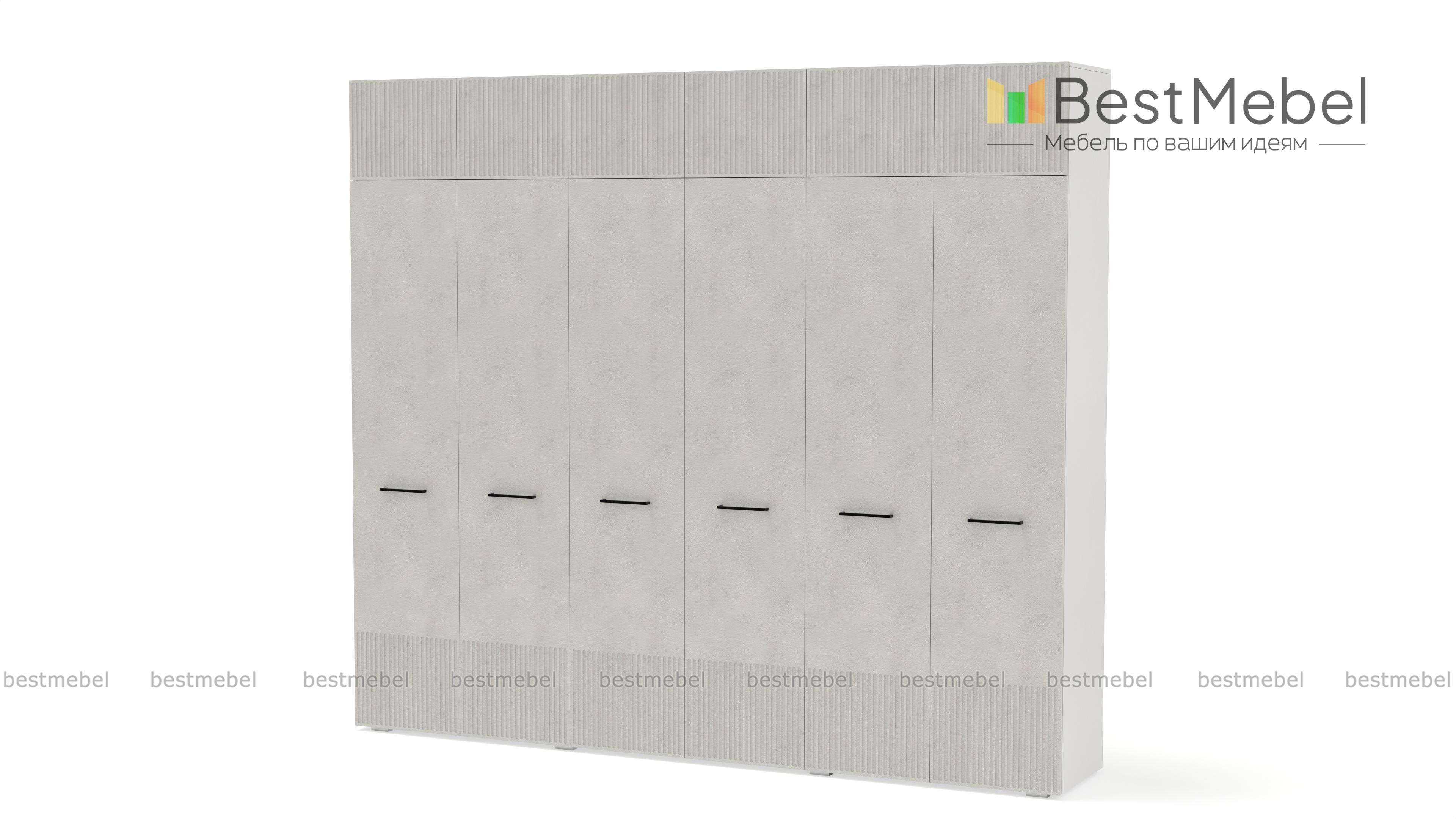 Шкаф распашной Декарт 12 BMS — это вместительный современный гардероб с антресолью. В двух секциях с перекладинами и двух бельевых отделениях можно хранить одежду на вешалках и сложенные вещи, а то, что вы редко используете, убрать на верхние полки. Светлый, рифленый по низу и верху фасад шкафа оснащен стильными поперечными ручками. Купить шкаф распашной Декарт 12 BMS вы сможете на сайте нашего интернет-магазина с изготовлением по индивидуальным размерам.