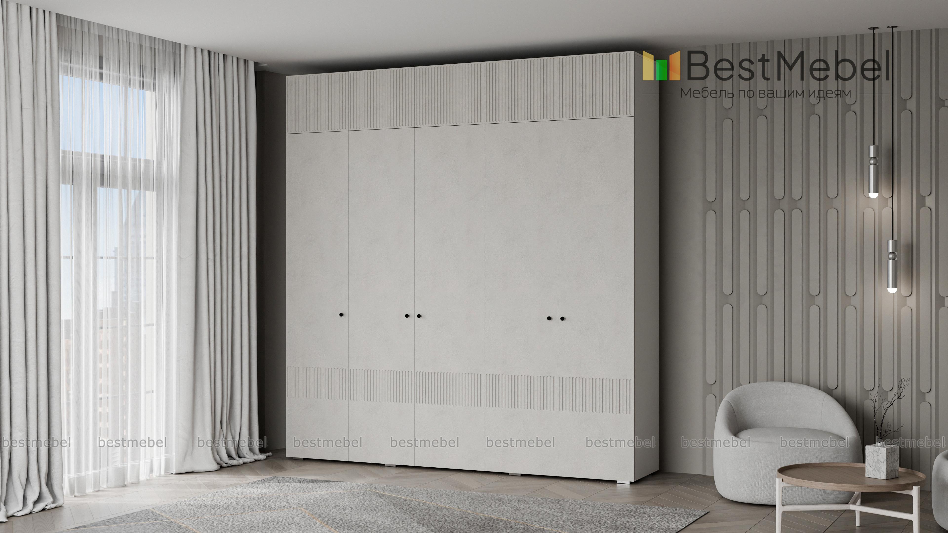 Шкаф распашной Джосс 11 BMS с антресолью — практичное и эстетическое решение для вашего дома. Пространство будет занято до потолка — значит, появится больше места для хранения как повседневного, так и сезонного гардероба. Внутри пятидверного шкафа располагаются две штанги и ряд бельевых полок, а сплошной фасад яркого аквамаринового цвета декорирован стильным рельефом. Купить шкаф распашной Джосс 11 BMS вы сможете на сайте нашего интернет-магазина в необходимом размере и любых оттенках из каталога.