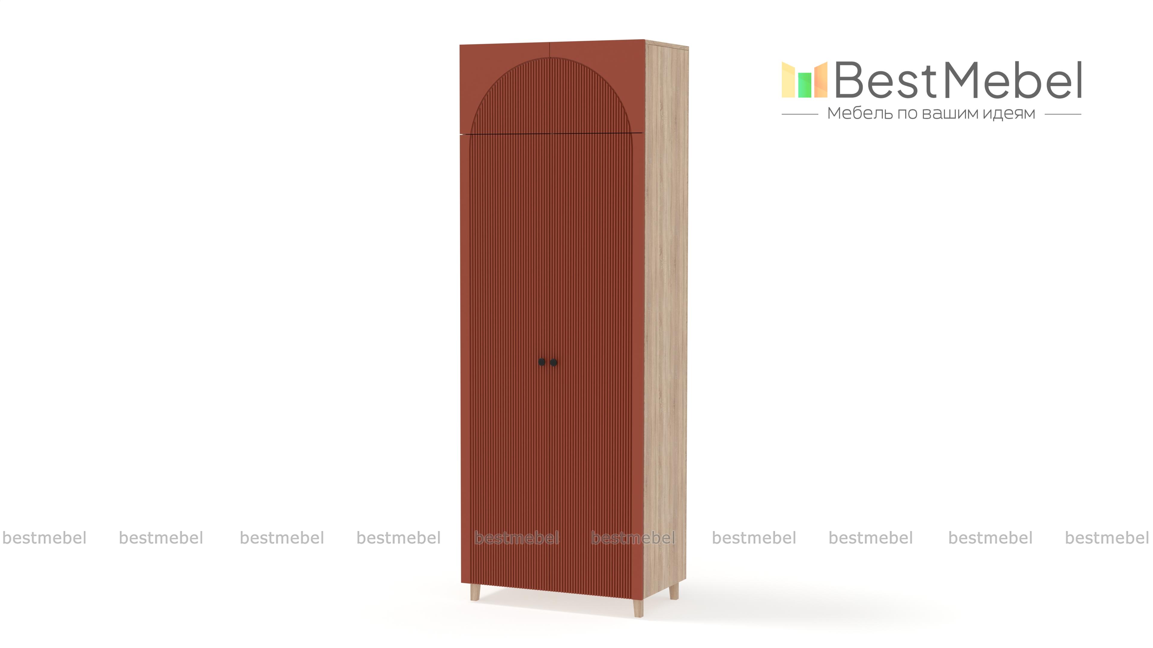 Шкаф распашной Вивьен 5 BMS сэкономит место и сохранит вещи в порядке. Высокая конструкция с деревянными ножками, просторной антресолью и штангой за двумя дверцами выручит вас, когда пространство комнаты ограничено. Стилистическим акцентом в интерьере современной квартиры станет оформленный трендовым рельефом фасад из МДФ. Купить шкаф распашной Вивьен 5 BMS вы сможете в нашем интернет-магазине с индивидуальным подбором размеров, цвета и наполнения.
