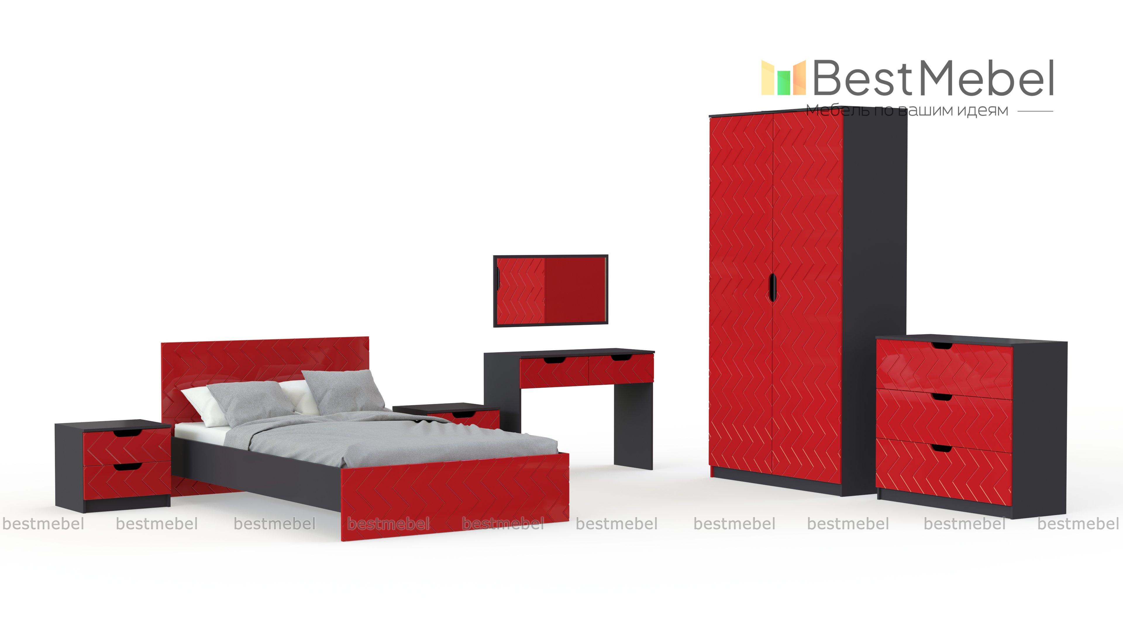 Спальня Грация 1 BMS поможет вам создать комфортный и актуальный интерьер с элементами скандинавского стиля. Гарнитур включает в себя все необходимое для полноценного отдыха, ухода за собой и хранения вещей – кровать с двумя тумбами, туалетный столик, навесное зеркало, вместительный бельевой комод и распашной платяной шкаф. Темные фрезерованные фасады с ручками-вырезами эффектно сочетаются с корпусом контрастных белых тонов. Купить спальню Грация 1 BMS вы сможете в нашем интернет-магазине по отличной цене.