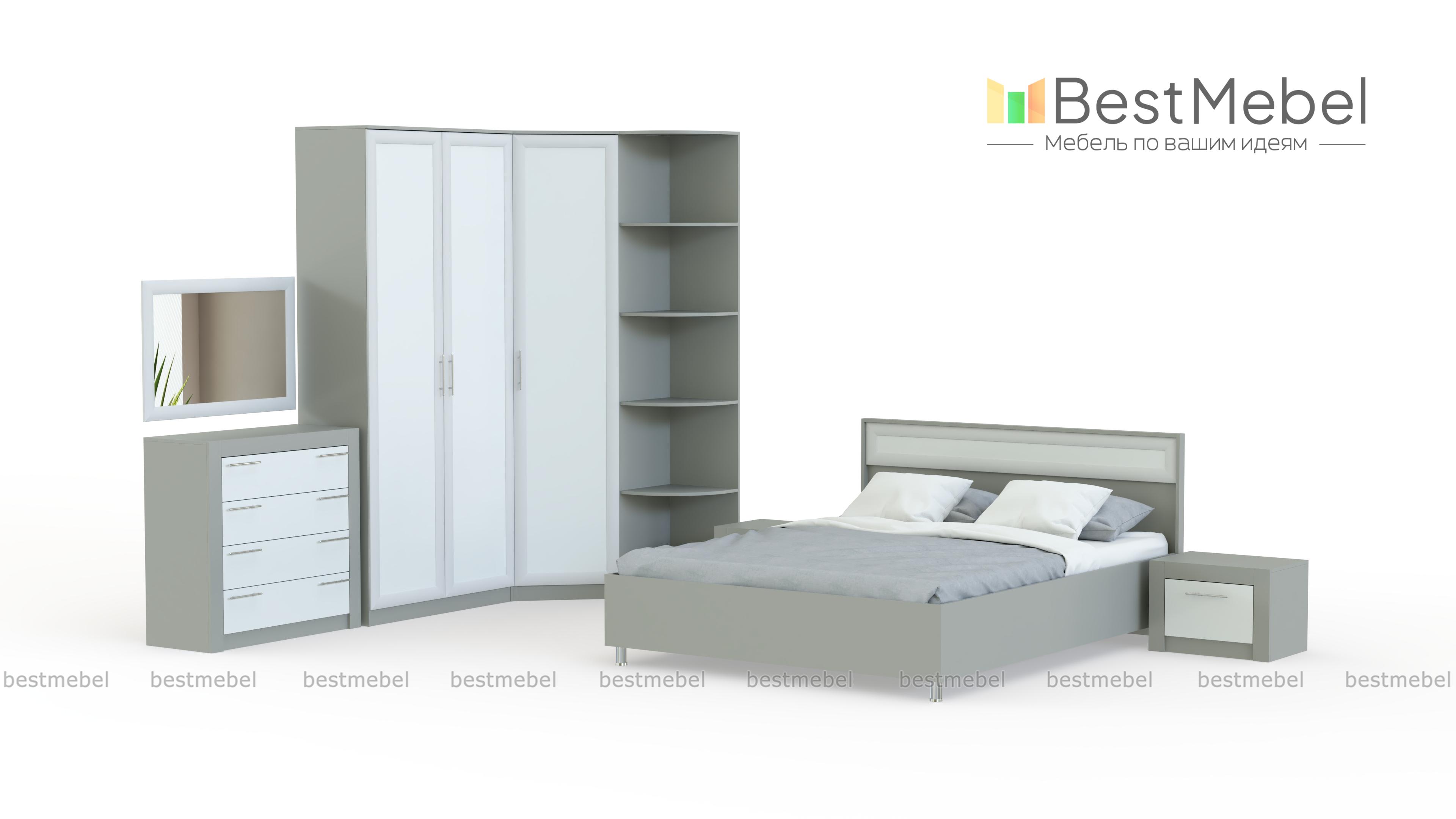 Спальня Токио 7 BMS по-восточному лаконична и выигрышно смотрится на контрасте древесных оттенков. В пространство у изголовья кровати гармонично вписываются две тумбы, для хранения постельного белья, одежды и всевозможных аксессуаров предусмотрены угловой шкаф с торцевым стеллажом и дополненный навесным зеркалом комод. Для отделки фасадов использованы широкие накладки и декоративная решетка. Купить спальню Токио 7 BMS с учетом необходимых размеров вы сможете в нашем интернет-магазине.