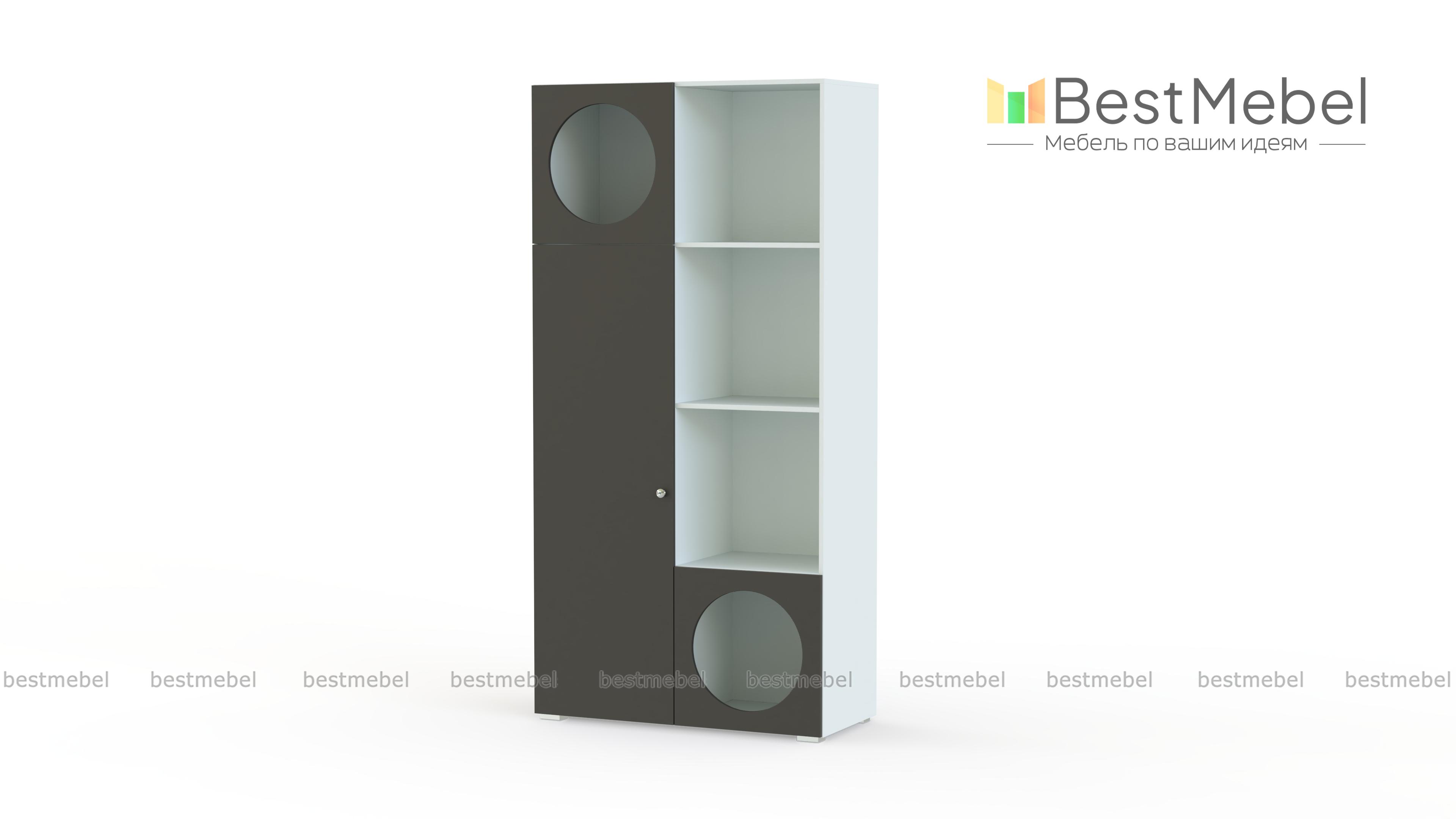 Стеллаж Авелин 10 BMS создан для комфортных молодежных интерьеров, в которых так важны эстетика и функциональность. Нейтральная светлая гамма, гладкие фасады и стильная геометрия — отличная база для воплощения самых разных идей. Оригинальная конфигурация стеллажа включает в себя полки с глухими фасадами, открытые отделения и секции с круглыми вырезами — вверху и внизу. Купить стеллаж Авелин 10 BMS, изготовленный по индивидуальным размерам, вы сможете в нашем интернет-магазине.