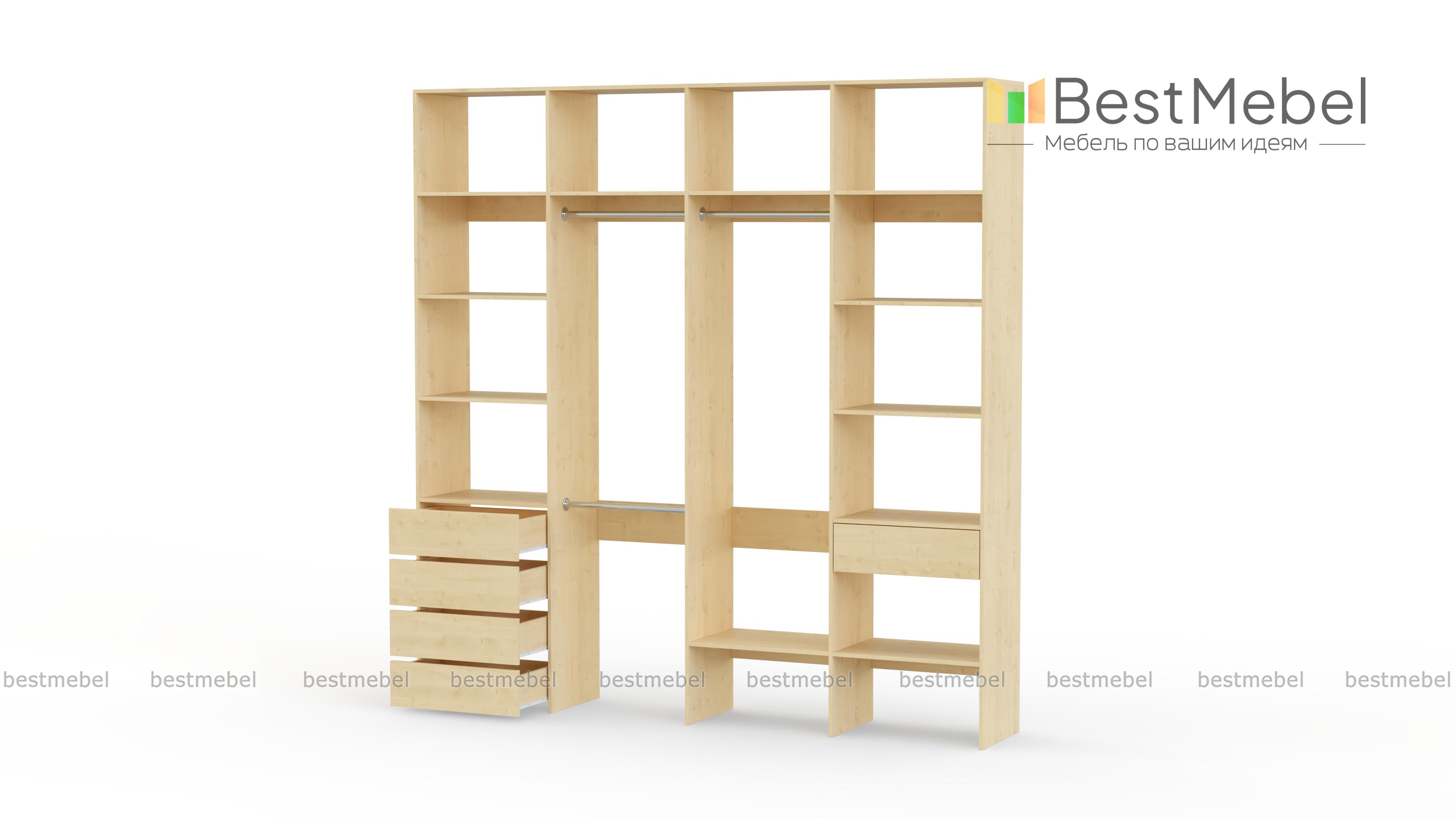 Стеллаж для одежды Мирта 18 BMS поможет вам создать полноценную гардеробную, где у каждой вещи есть свое место. Продуманная компоновка позволяет развесить одежду по типам и сезонности, разместить обувные коробки и убрать мелочи. Три штанги, полки и выдвижные ящики находятся на удобной для ежедневного пользования высоте, учитывая требования эргономики. Купить стеллаж для одежды Мирта 18 BMS вы сможете в нашем интернет-магазине, самостоятельно подобрав цвет и размеры.