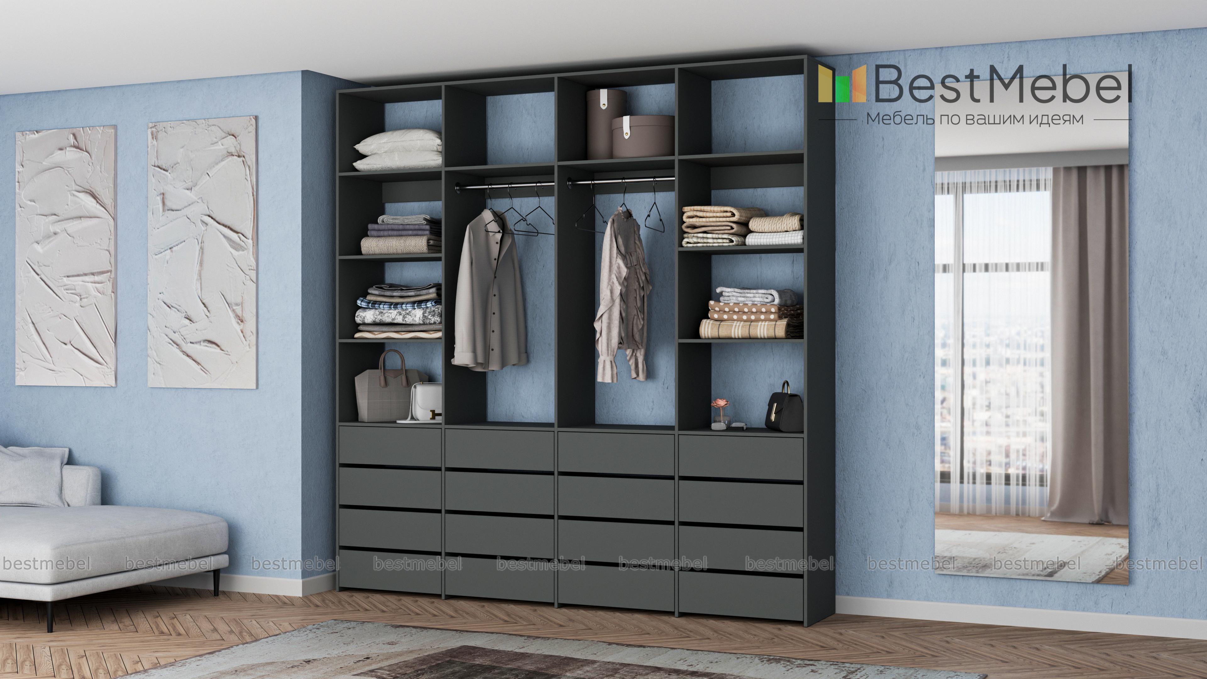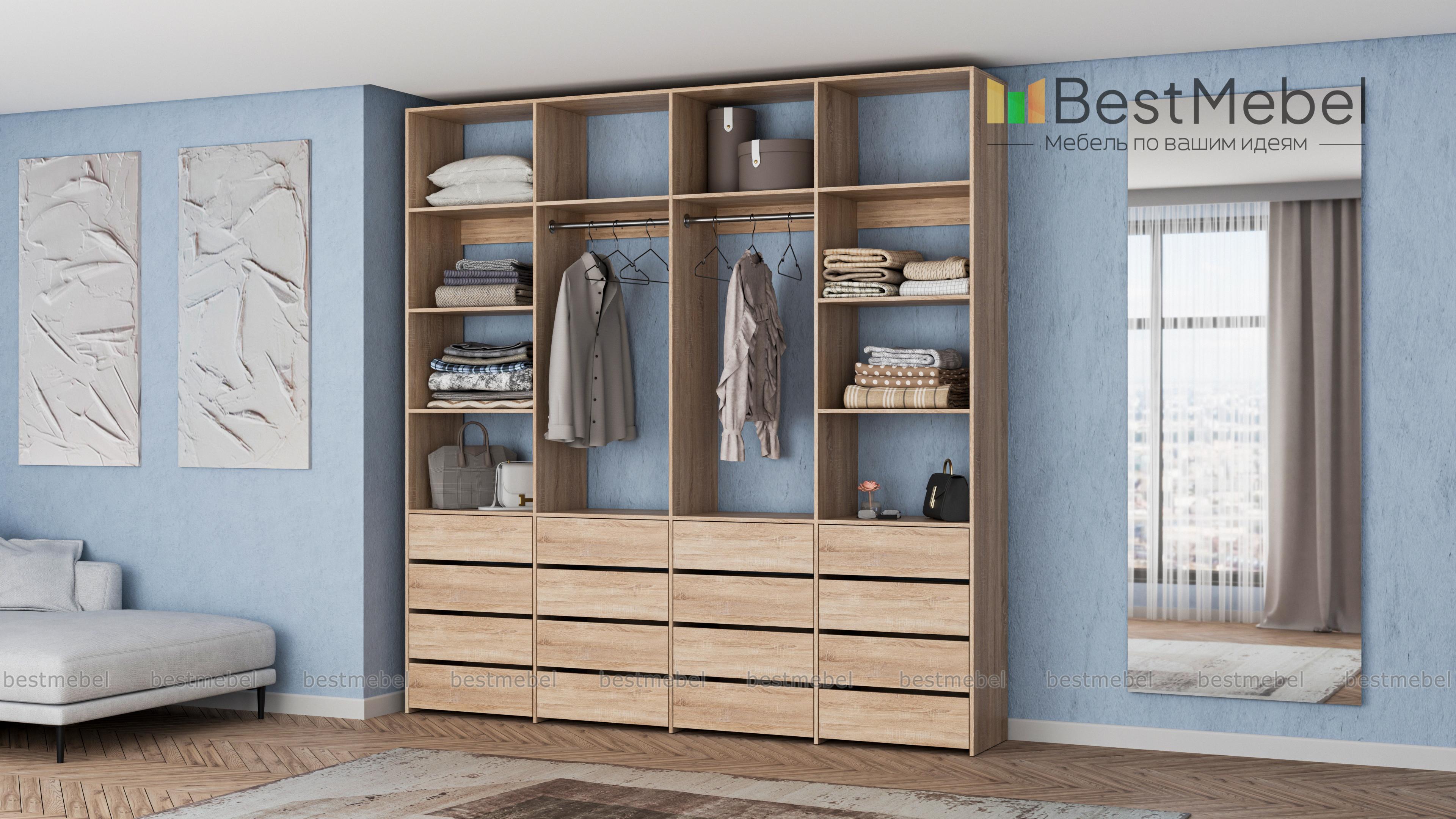 Стеллаж для одежды Мирта 63 BMS — это продуманная система хранения и функциональный современный дизайн. Две штанги и полки помогут разместить вешалки с одеждой, обувные коробки и текстиль, а четыре ряда выдвижных ящиков станут полноценной заменой бельевому комоду. Для изготовления стеллажа использована ламинированная ДСП высокого качества и надежная фурнитура. Купить стеллаж для одежды Мирта 63 BMS с выбором размера и цвета по каталогу приглашаем в наш интернет-магазин.