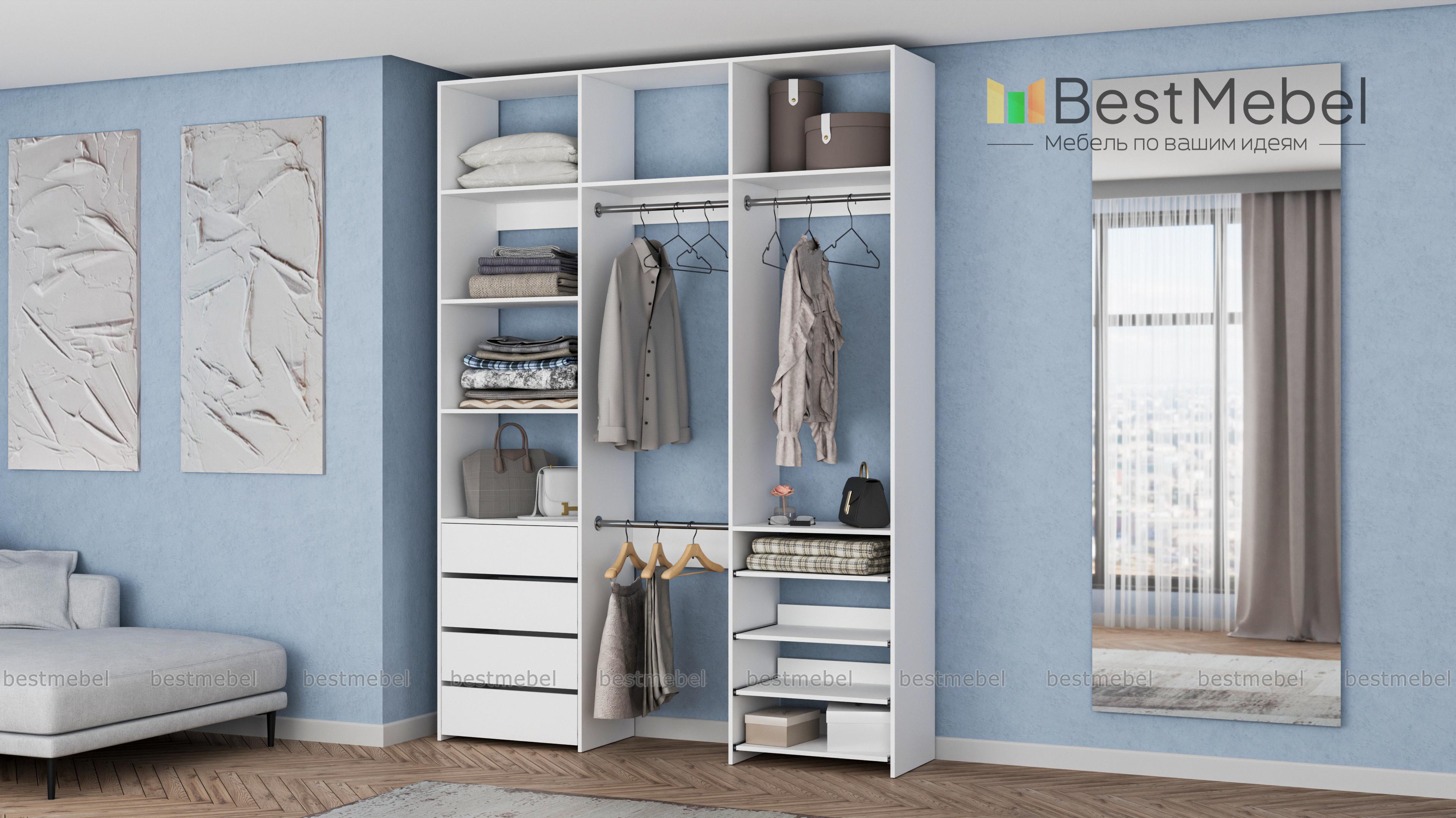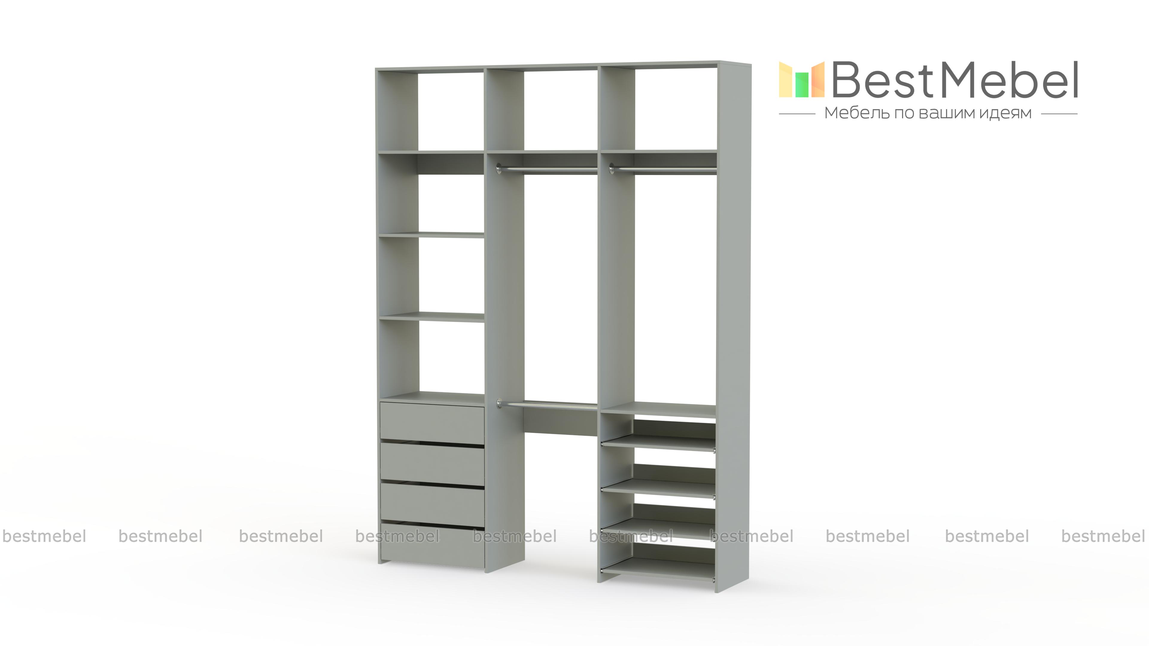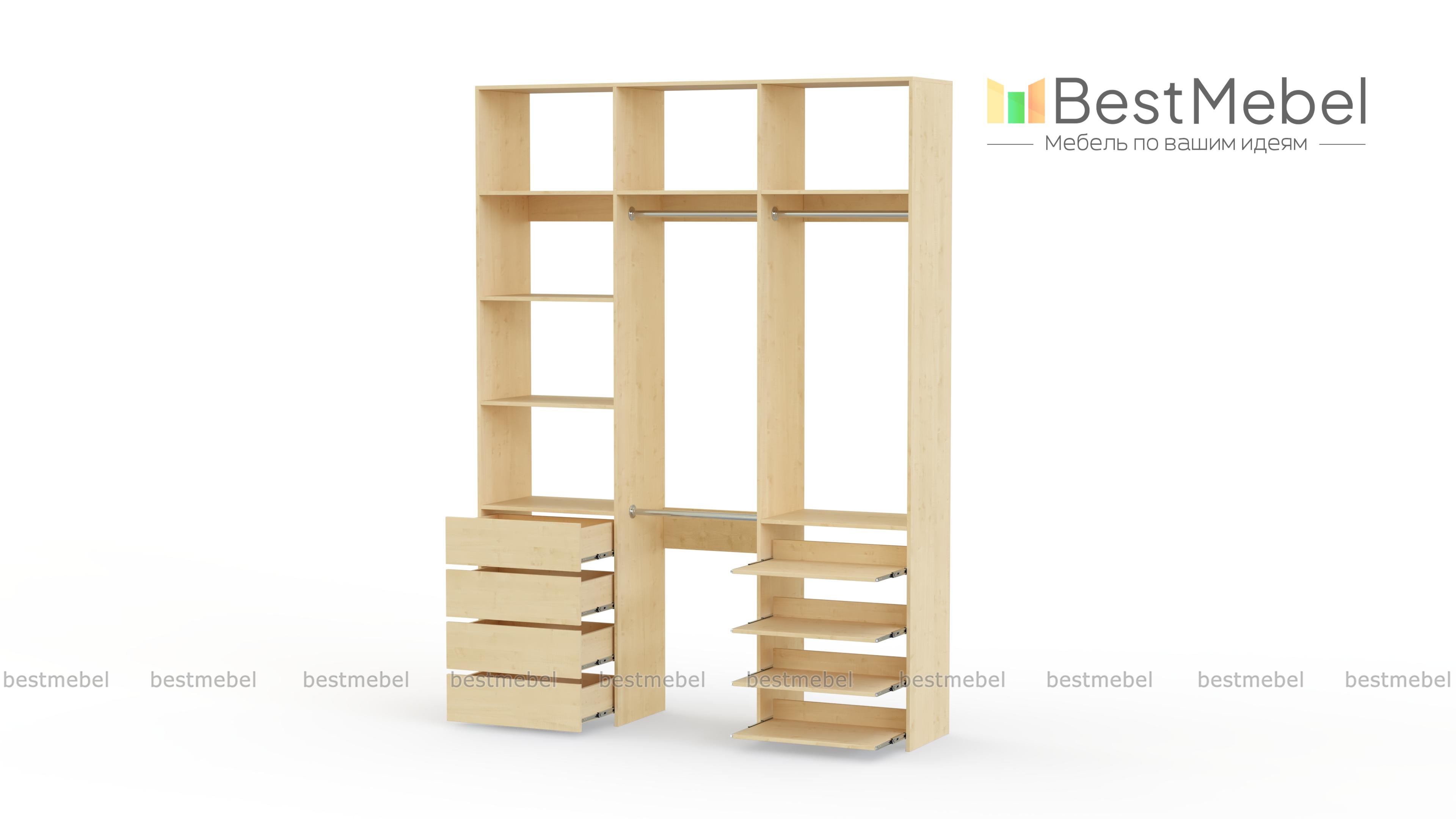Стеллаж для одежды Мирта 88 BMS имеет открытую легкую конструкцию и универсальный дизайн. Комбинация трех штанг, бельевых отделений, ряда выдвижных ящиков и полок эффективно использует пространство вашей прихожей или гардеробной. Изготовленный из ламинированной ДСП высокого качества, стеллаж отличается прочностью и широким выбором цветовых решений. Купить стеллаж для одежды Мирта 88 BMS в гармонирующем с интерьером оттенке вы сможете на сайте нашего интернет-магазина.