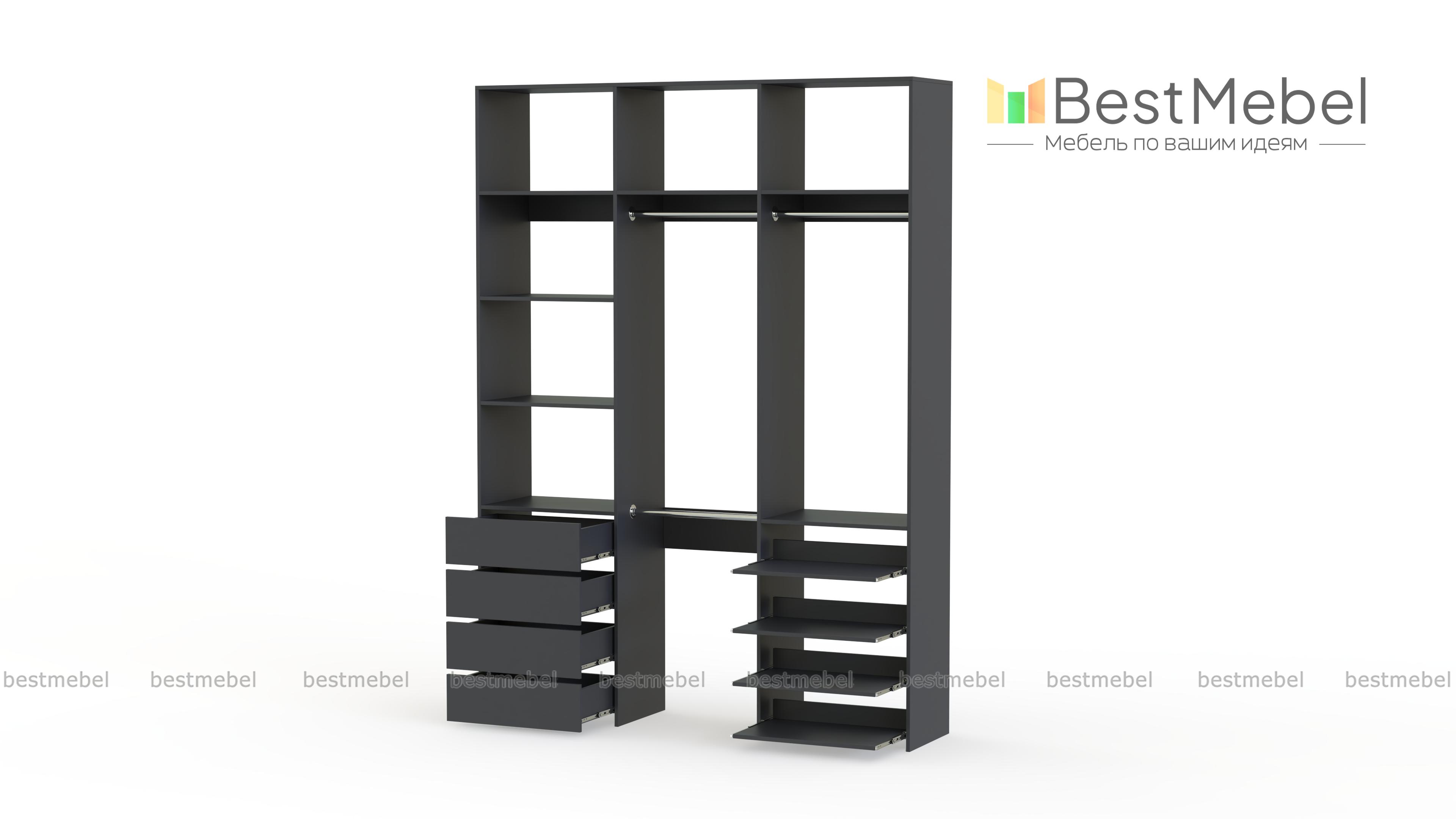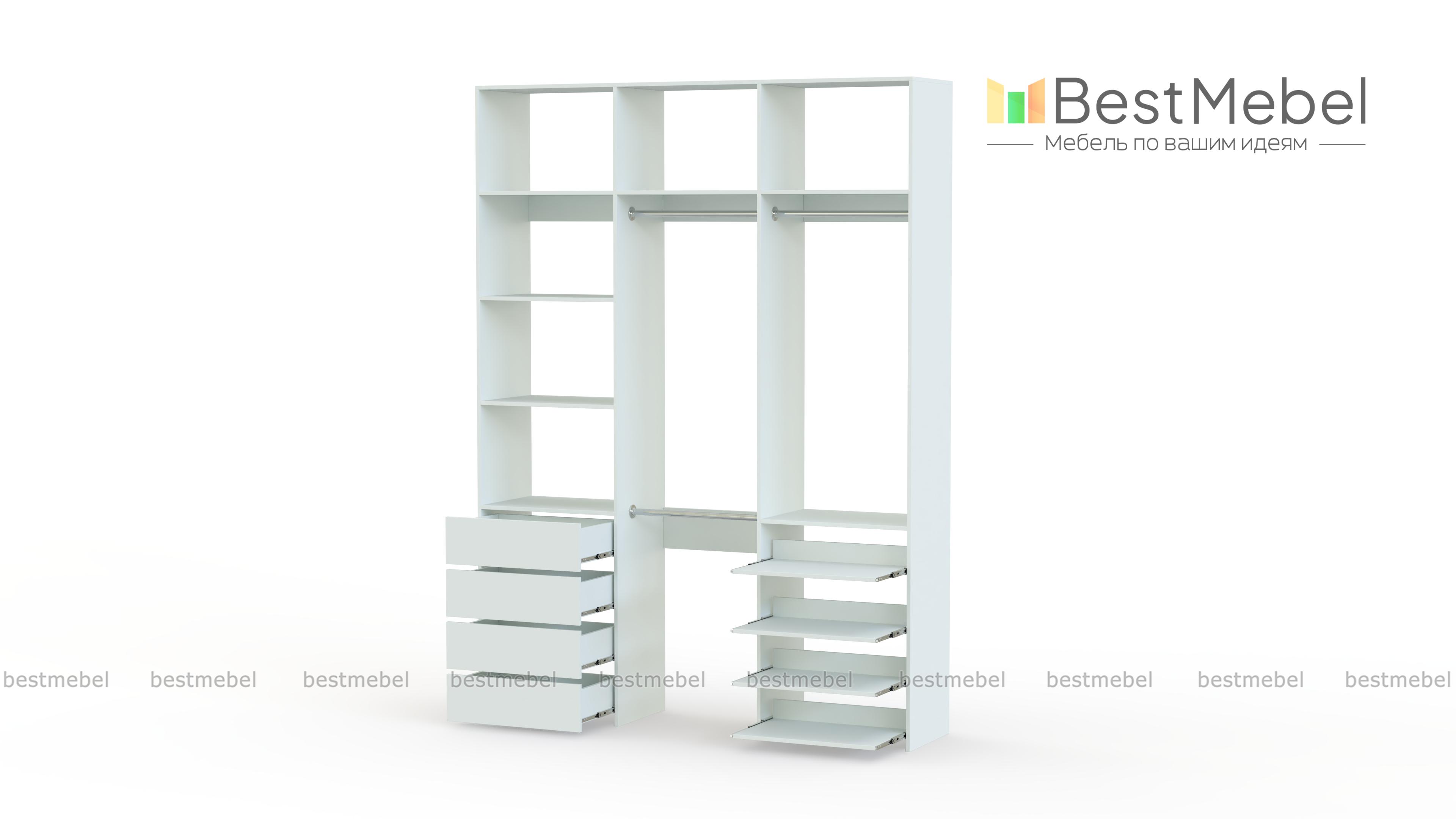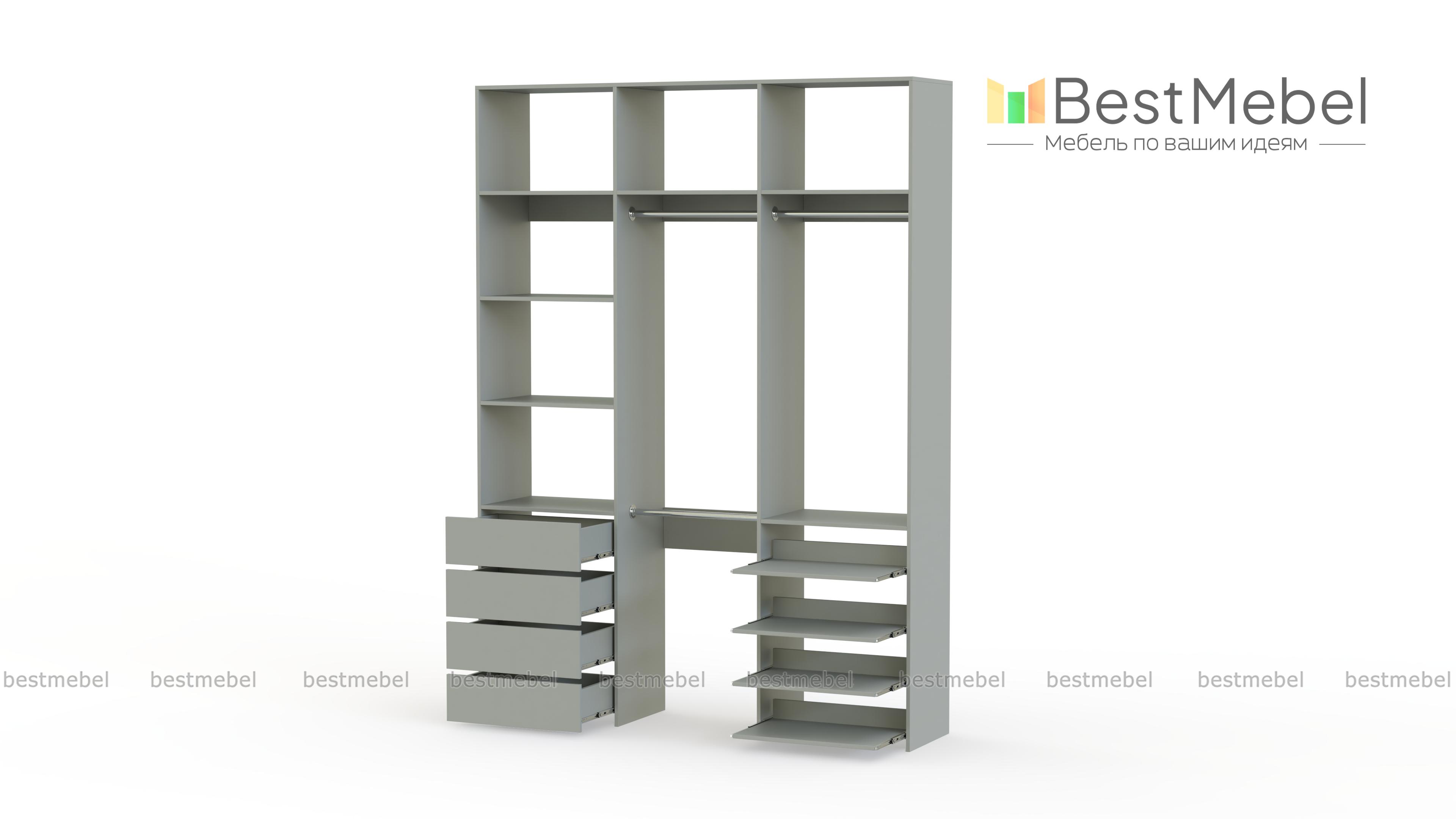 Стеллаж для одежды Мирта 88 BMS имеет открытую легкую конструкцию и универсальный дизайн. Комбинация трех штанг, бельевых отделений, ряда выдвижных ящиков и полок эффективно использует пространство вашей прихожей или гардеробной. Изготовленный из ламинированной ДСП высокого качества, стеллаж отличается прочностью и широким выбором цветовых решений. Купить стеллаж для одежды Мирта 88 BMS в гармонирующем с интерьером оттенке вы сможете на сайте нашего интернет-магазина.