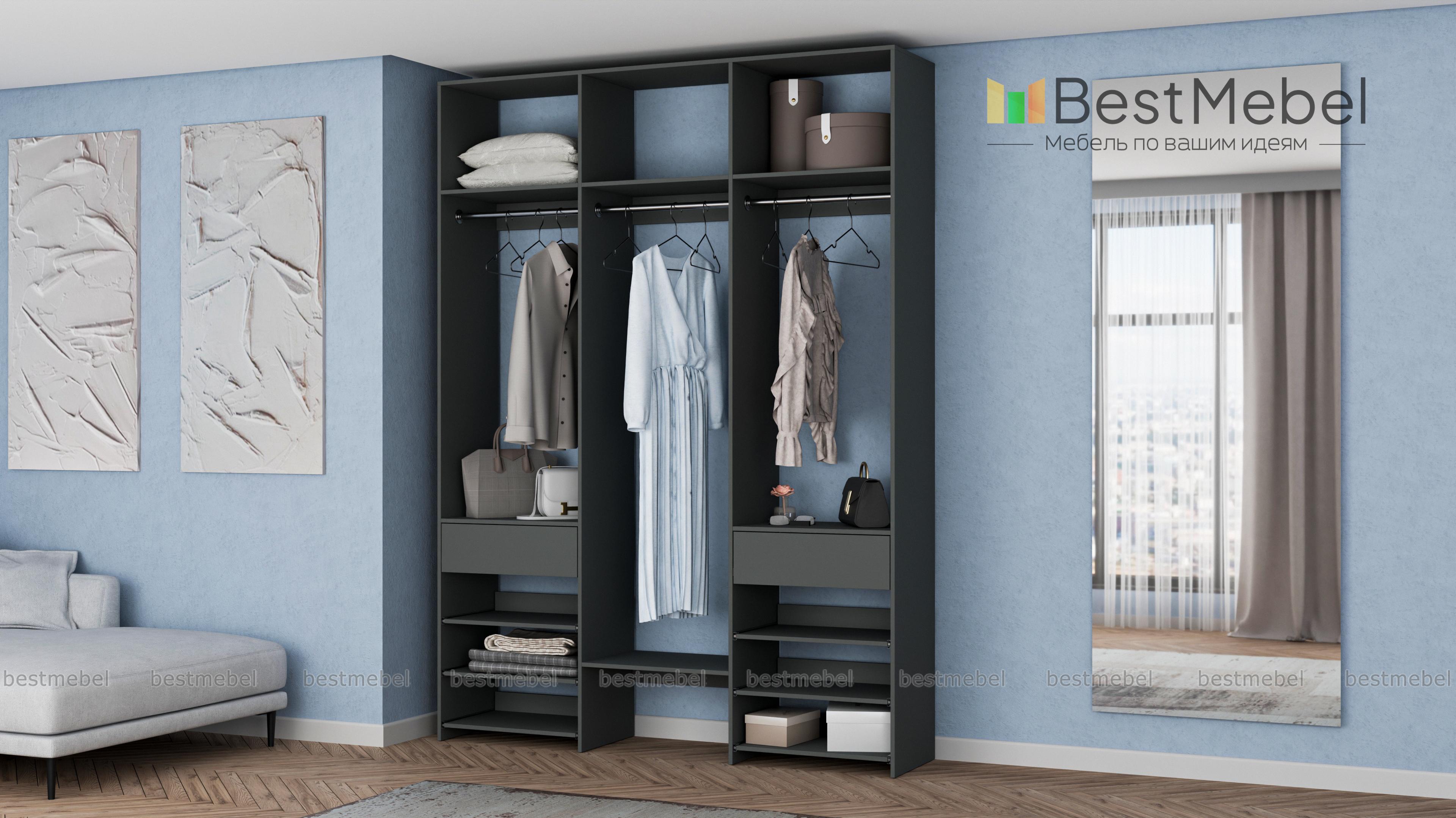 Стеллаж для одежды Мирта 91 BMS позволяет разместить вещи на виду и в легком доступе. Для хранения короткой и длинной одежды на вешалках, сложенных вещей, мелкого трикотажа и обуви идеально подходит комбинация из трех штанг, верхних полок, выдвижных панелей и пары ящиков. Стеллаж из ламинированной ДСП с древесным рисунком прочный и эстетичный, при этом доступный по цене. Купить стеллаж для одежды Мирта 91 BMS в любом оттенке из каталога и нужном размере приглашаем к нам в интернет-магазин.
