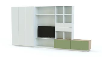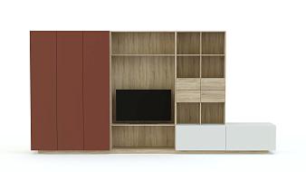 Вопрос организации пространства в гостиной стоит остро, особенно для однокомнатных квартир или студии. Каждой семье важно хранить все свои вещи в порядке, при этом не испортить общий стиль квартиры. Стильная функциональная стенка – лучшее решение Ваших проблем! Одежда, книги, телевизор и приятные мелочи найдут свое место в Вашем доме.