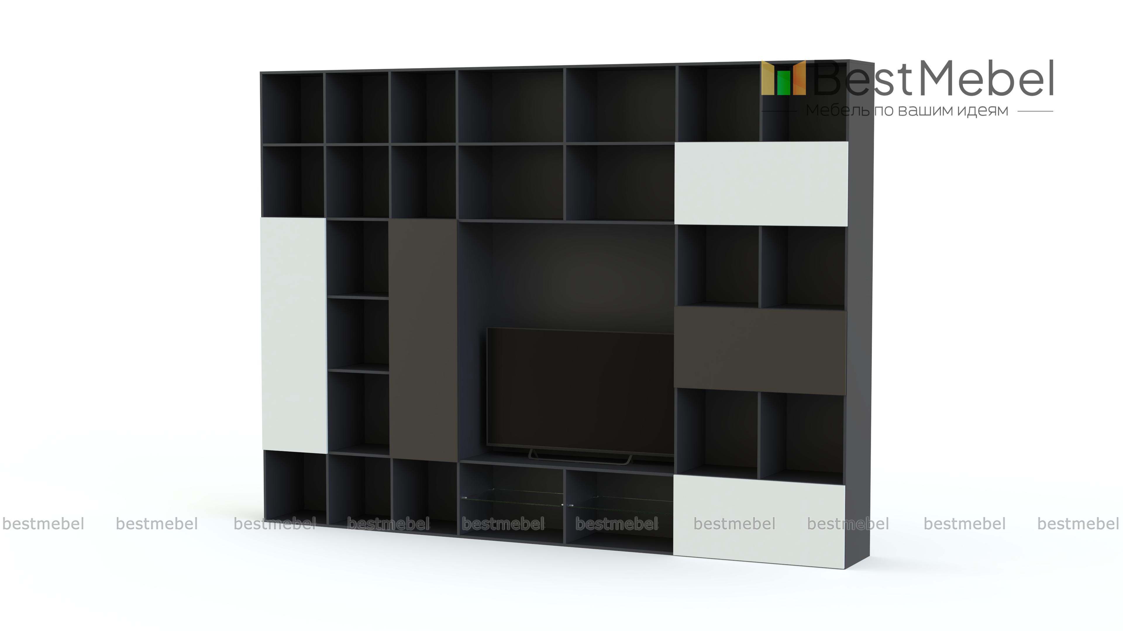 Стенка для гостиной Соло 14 BMS – это современное решение для организации пространства гостиной. Полностью занимающая одну из стен комнаты, композиция представляет собой комбинацию из открытых полок, глухих распашных отделений, тумбы под аудио- и видеоаппаратуру и панели под ТВ. В оформлении яркой стенки гармонично сочетаются нейтральный древесный корпус и графитово-белые контрастные фасады. Купить стенку для гостиной Соло 14 BMS приглашаем в наш интернет-магазин по доступной цене.