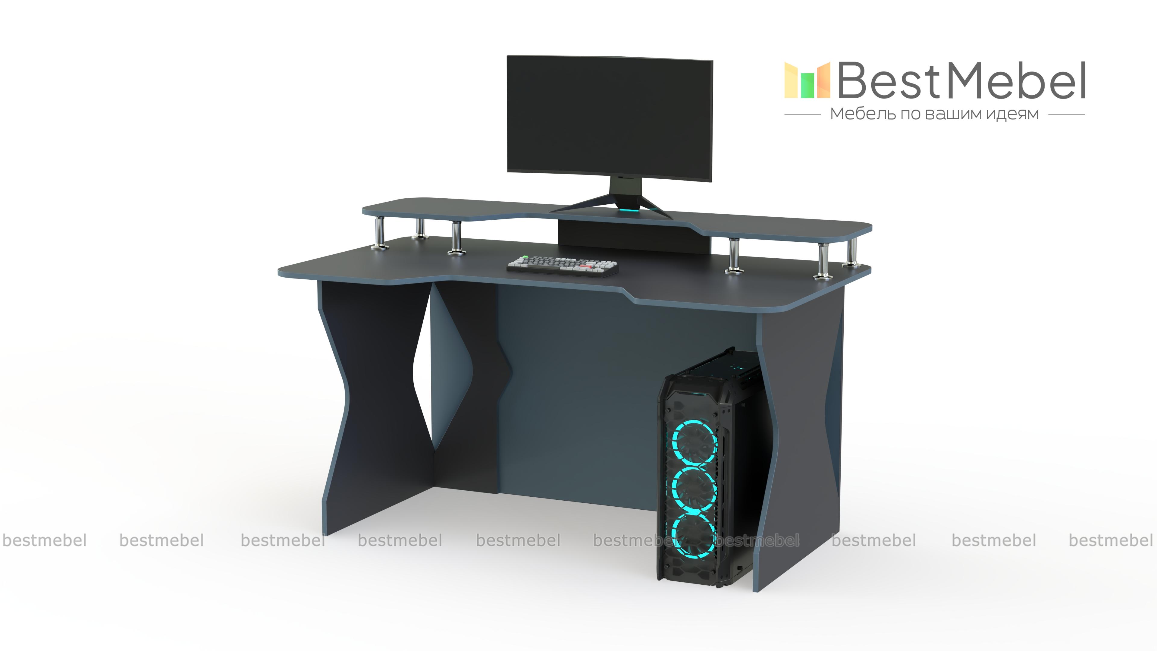 Игровой стол Персей тип 5 BMS с эффектно вырезанными боковинами и задней стенкой гармонично впишется в современные интерьеры. Прямая модель оборудована просторной столешницей с трапециевидной выемкой и надстройкой, на которой разместятся монитор и необходимые периферийные устройства. Креативный дизайн модели подчеркнет микс синего цвета и контрастной белой кромки. Купить игровой стол Персей тип 5 BMS и создать эргономичное пространство вам поможет наш интернет-магазин.