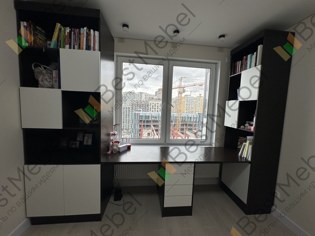 Заказ 00000150058. Письменный стол - целая творческая зона. Поверхность большая — хватает места и для творчества, и для учебы. С двух сторон удобные шкафы с полками и закрытыми секциями — можно аккуратно разложить все материалы, игрушки и тетради. Ящики вместительные, легко открываются.Отдельное спасибо службе поддержке, за уточнение деталей и объяснение как будет удобнее.