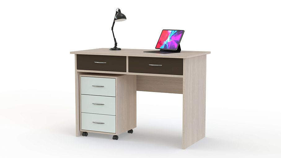 Стол письменный Бабочка-2 BMS, декорированный яркими цветными вставками, гармонично дополнит интерьер комнаты ребенка. Модель выполнена в светлых древесных тонах и оборудована столешницей классической прямоугольной формы, дополненной двумя выдвижными ящичками для мелочей. Разместить необходимые принадлежности для школы и творчества поможет практичная тумба на колесных опорах, которая легко перемещается и займет наиболее удобное место. Купить стол письменный Бабочка-2 BMS приглашаем в наш интернет-магазин.