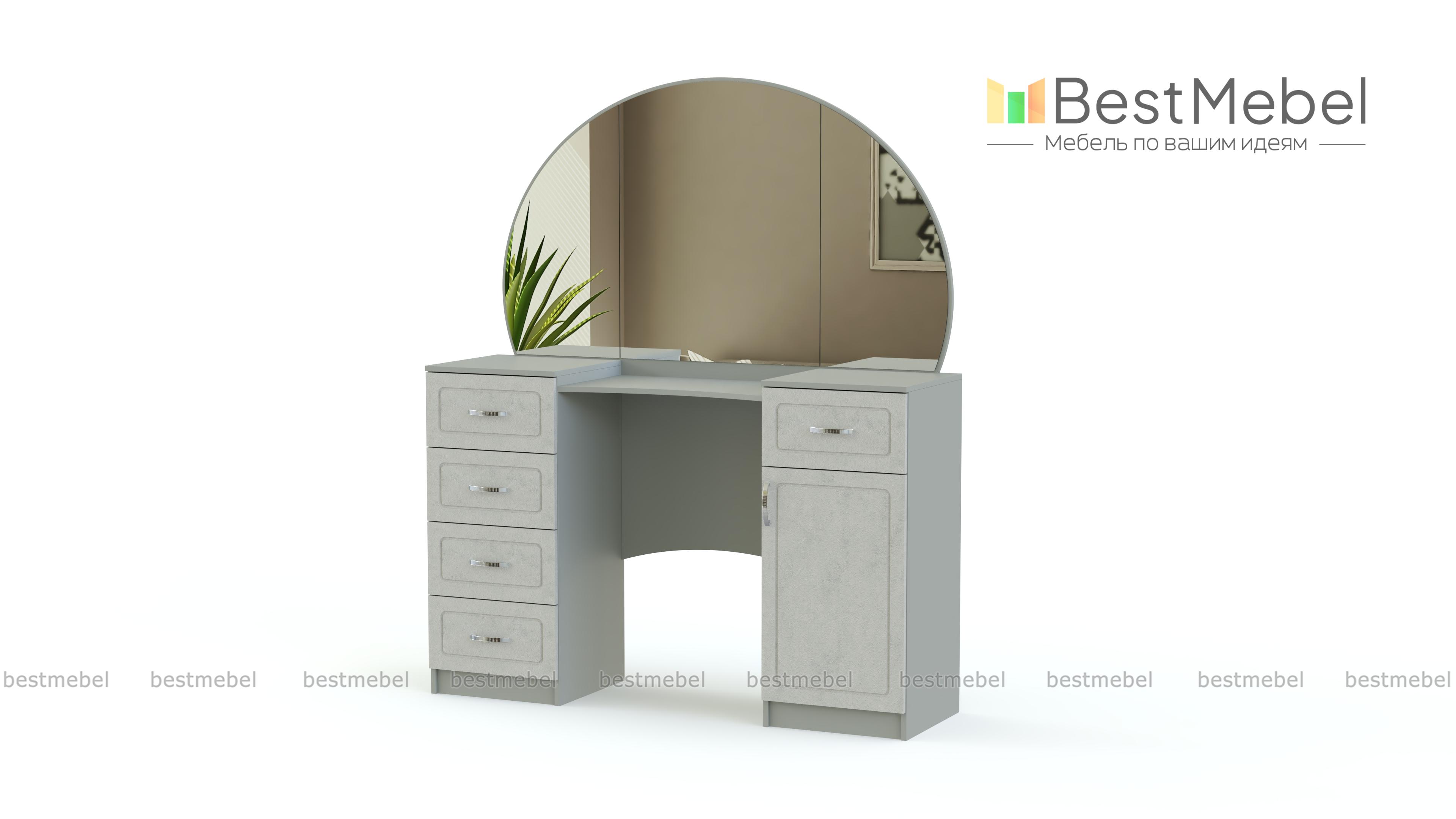 Стол туалетный Иво-5 BMS – элегантная модель для интерьера в классическом стиле. Столик оборудован эргономично вырезанной столешницей, большим овальным зеркалом и двумя тумбами – с выдвижными ящиками и распашным отделением для хранения разнообразных мелочей. Выполненные в насыщенных теплых тонах, фасады декорированы неброской фрезеровкой. Купить стол туалетный Иво-5 BMS и дополнить спальный гарнитур практичным предметом вам поможет наш интернет-магазин.