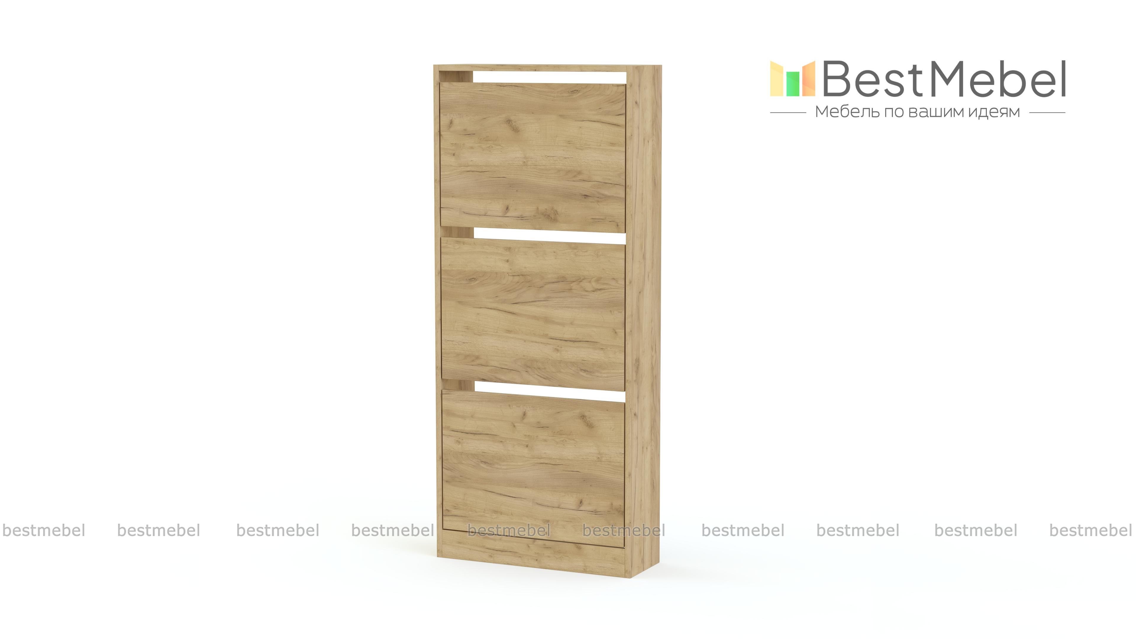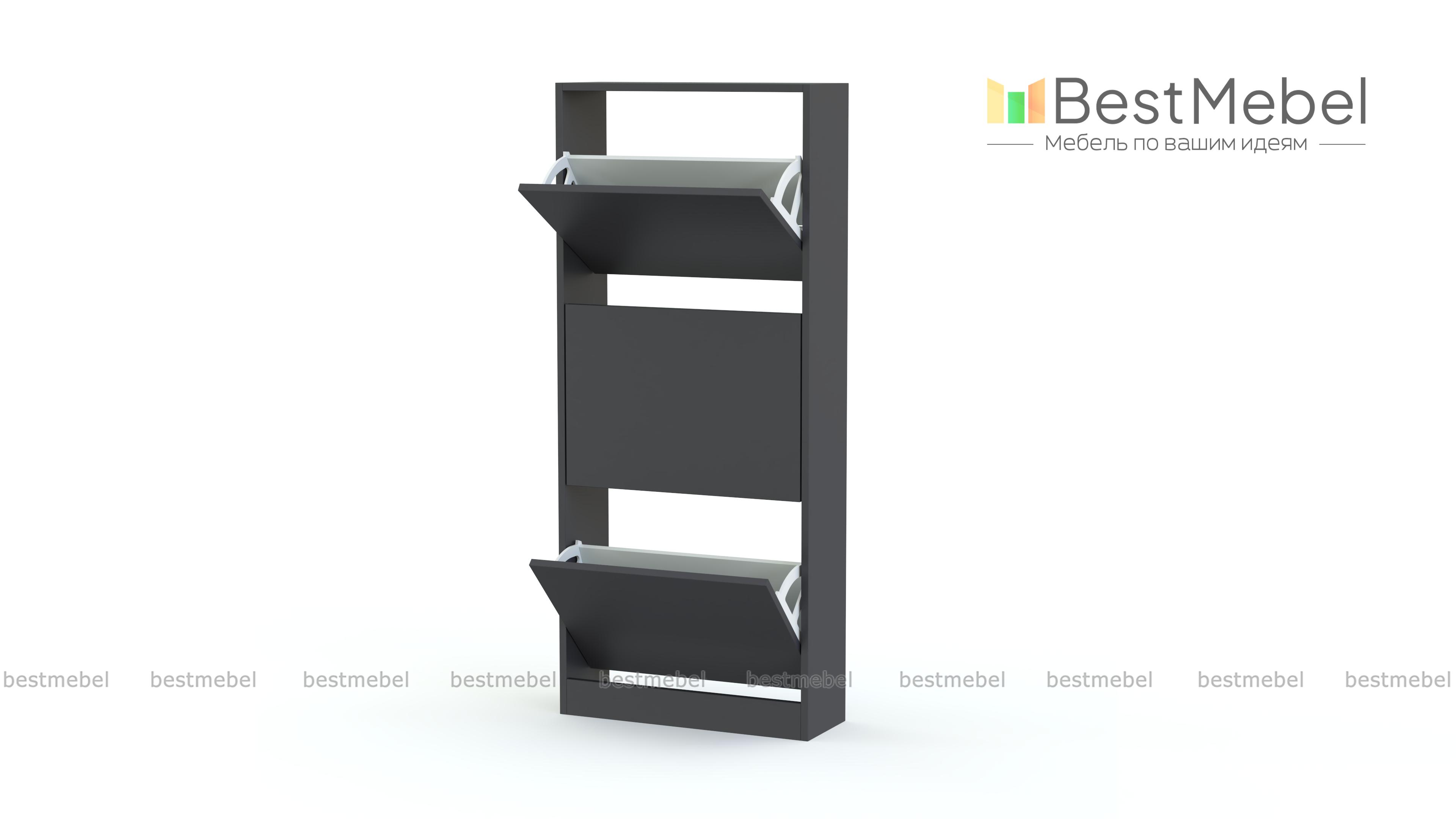 Обувница Анри 7 BMS занимает минимум места благодаря небольшой глубине. Узкая трехсекционная модель лаконичного дизайна гармонично вписывается в маленькие квартиры и студии, легко сочетаясь с другой мебелью. Для бережного хранения повседневной обуви конструкцией предусмотрены откидные лотки с одним отделением и глухими фасадами. Купить обувницу Анри 7 BMS, изготовленную по индивидуальным размерам, вы сможете недорого на сайте нашего интернет-магазина.