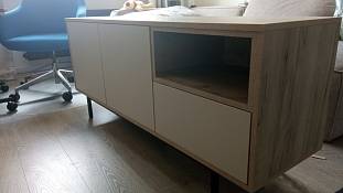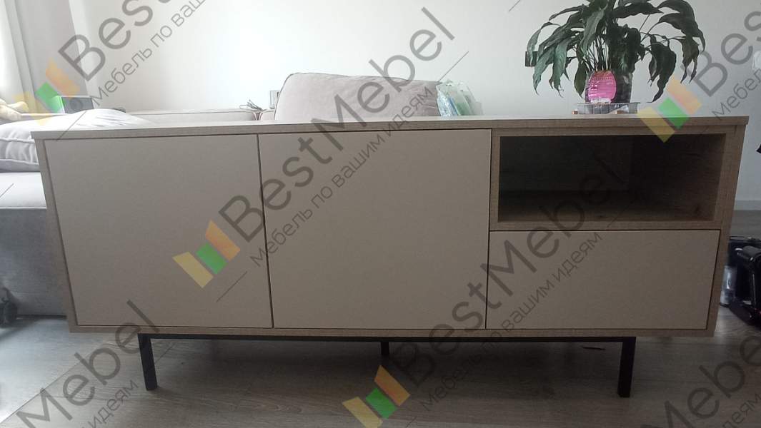 Отличная тумба. Заказ оплатил и привезли мне его буквально через пять дней. Но я не менял размеры, взял те, что на сайте, мне все подошло. Телевизор просто отлично встал, еще куча места есть в ящиках под всякую дребедень очень нужную.