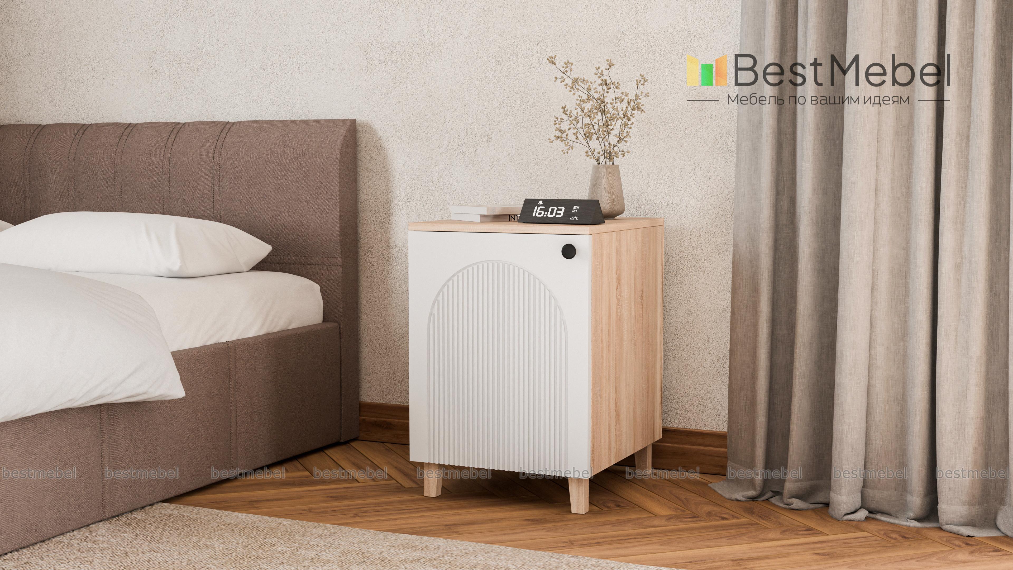 Тумба прикроватная Рене 1 BMS эстетично дополнит спальную композицию. Модель с одним распашным отделением разместит рядом с кроватью книги, средства ухода и прочие личные вещи, приятные мелочи и декор. Тумба с высокими ножками и оригинальным рельефом фасада прекрасно смотрится в комплекте с другими предметами коллекции и самостоятельно. Купить тумбу прикроватную Рене 1 BMS вы сможете на сайте нашего интернет-магазина, по желанию изменив цвет и размеры.