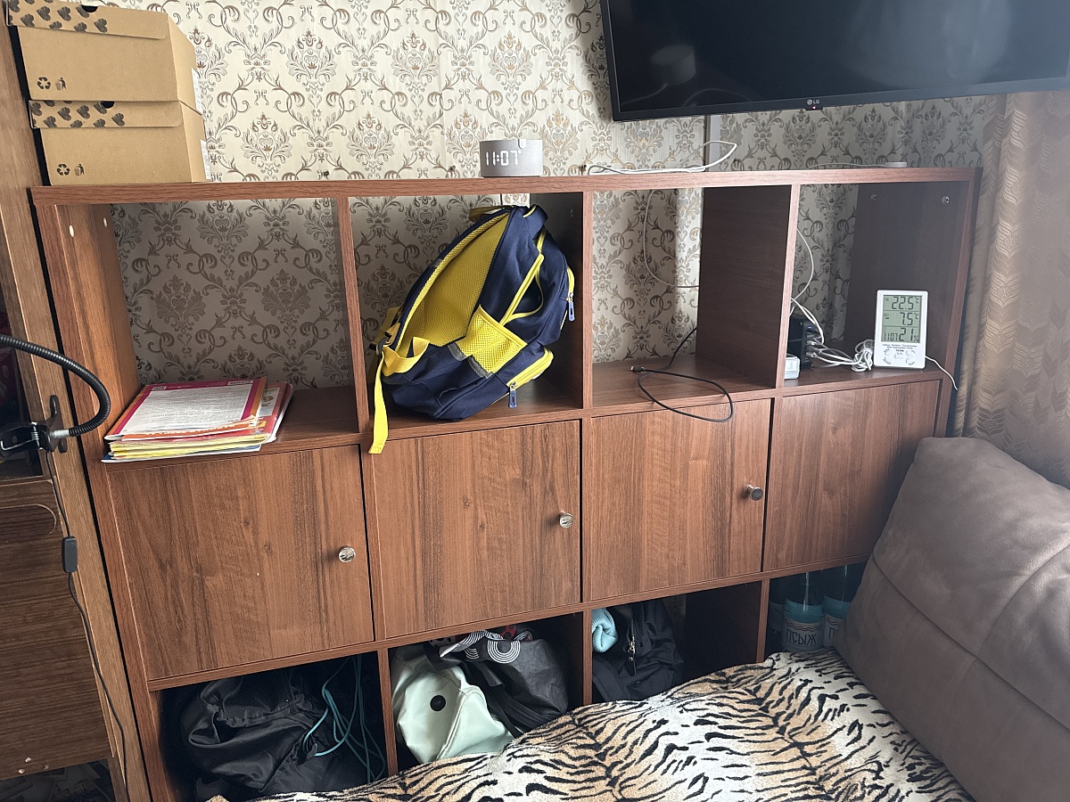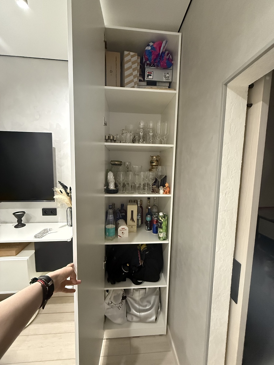 Стеллаж идеально встал в ноги дивана, позволив максимально использовать пространство в очень маленькой комнате. Да, он похож на камеру хранения, но тем он и прекрасен))) В открытые полки прекрасно протянулись провода и поместилось многопроводная зарядная станция. Но у меня в очередной раз вопрос: что движет вами, когда для крепления ручек вы поставляете такие короткие болты? Я заказывала у вас 5 изделий с разными ручками и НИ ОДНУ не удалось прикрутить штатными болтами….