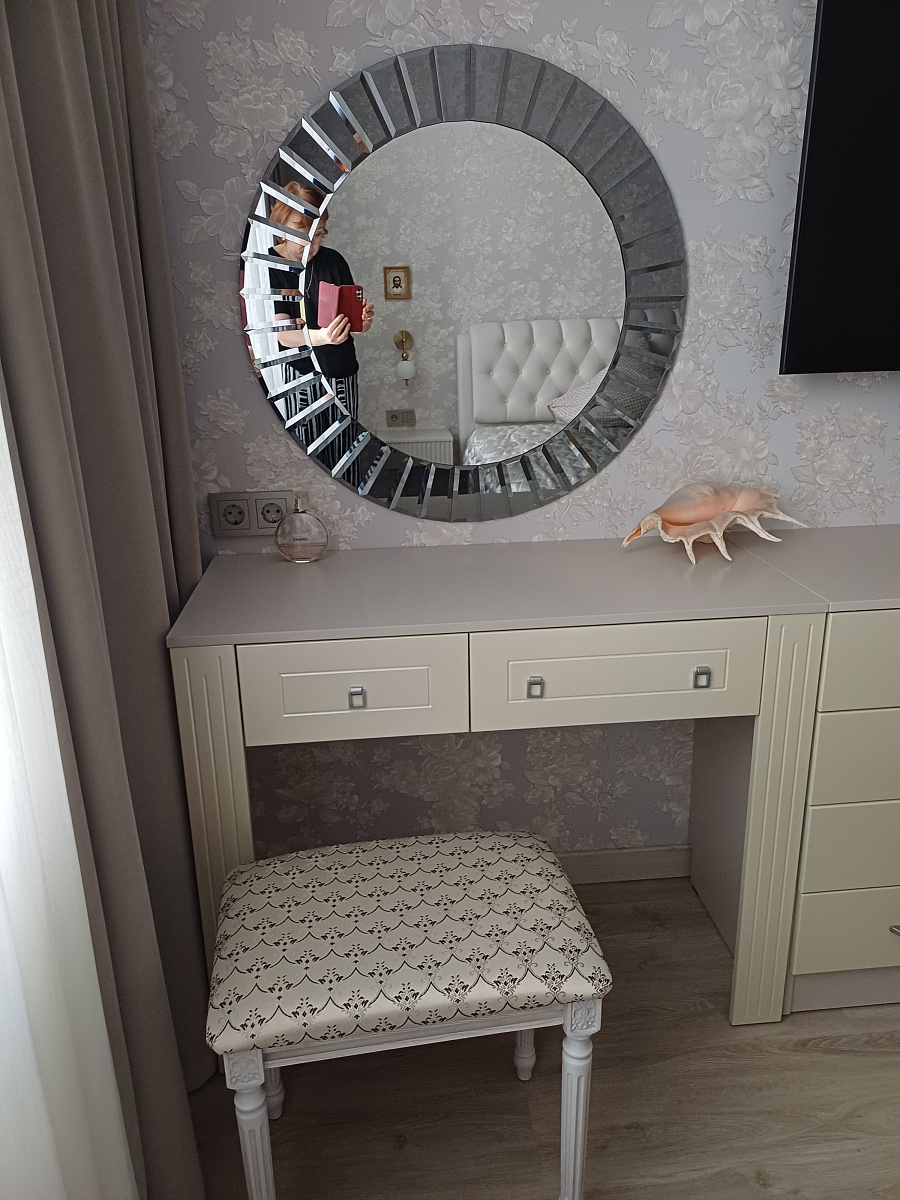 Приобрела столик вместе с комодом. Дл я меня важным было  сделать в динаковом цвете и в нужном мне размере. Все получилось. Хотя в нашем городе нет представительства фабрики пришлось заказывать цвет на страх и риск. Но все сложилось замечательно. Рекомендую !!!!