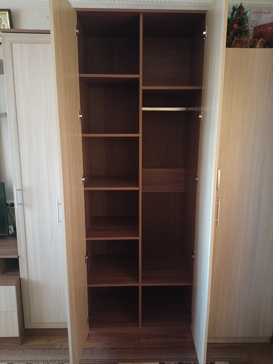 Офигенный шкаф, как раз то, что я искал. Хорошая сборка, всё плотно и ровно, никаких перекосов и сколов. К дверям тоже вопросов нет, катаются как по маслу. Работники тоже молодцы, сразу назвали дату доставки, за пару дней ещё раз позвонили уточнили сроки и возможность приёмки, никаких задержек, всё чётко. Есть только  одно замечание : деталь Цоколь2  крепится к дну с помощью 2 конфирматов, а отверстия в ней были сделаны под 3 шканта, как в Цоколь1. Лично для меня не проблема, легко исправил, на внешний вид не влияет. Результатом доволен на все 100.