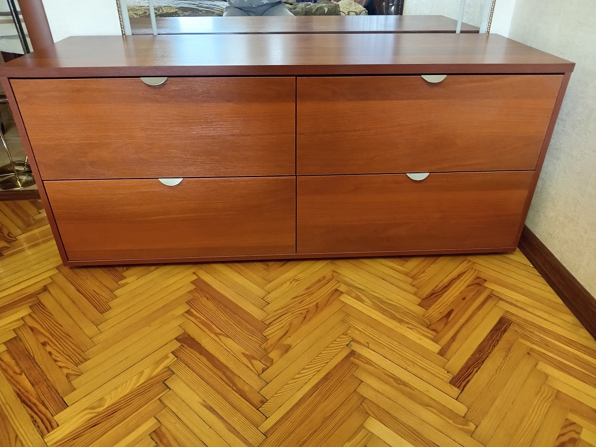 Заказ 00000635793, изделие Комод Нордмела Nordmela 1 (1390х600х450). Все прошло на отлично, доставка вовремя, оплата по факту доставки, сборка не вызвала затруднений. Комод  эксплуатируется в течение 2 месяцев, нареканий к качеству нет. Дизайном, ценой и функциональностью комода были довольны изначально.