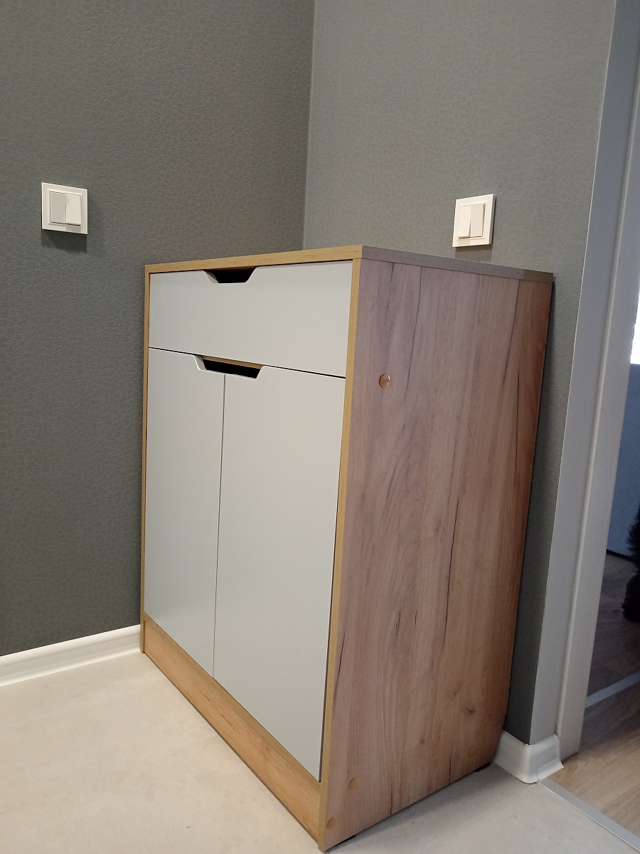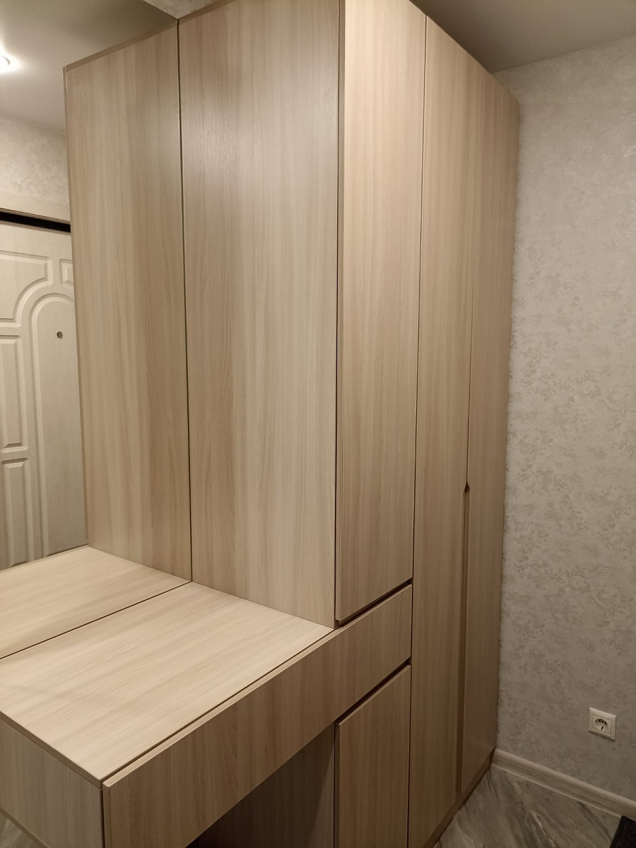 Прихожая отличная, всё устраивает. Внесли все мои пожелания и дополнения при изготовлении. Обошлась в 23.400 + подъём + 13% собиралась вертикально,т.к. места мало было.