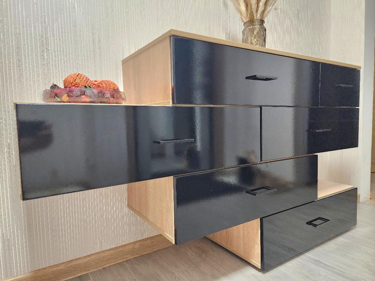 Вообще классный шкаф, все понравилось, вписался в интерьер очень стильный дизайн, хорошее качество, конфигуратор на сайте безусловный плюс! Сразу по пунктам!Плюсы:Классный конструктор на сайте под который все могут изготовить на любой вкус.Разметки и отверстия засверлены отлично без перекосов все ровненько.Комплект фурнитуры с запасом, хотелось бы вместе кучи саморезов запасные эксцентрики, они в целом слабенького качества. Наклейки на конформаты чтоб не видно было отверстий с запасом, заглушек с запасом.Задняя стенка из ДСП а не картонка как обычно бывает отлично.Качество фасада отличное, покрашено с бархатистым эффектом на ощупь.На каждом элементе ДСП наклейка тоже удобно, но без инструкции бесполезны.Минусы:Распил местами не в размер попался зазор в миллиметр еле зажал его. В целом ДСП распилен на 7-8 балов. Есть опыт сборки.Инструкция ужасная, один листик со схемой. Если бы не опыт в сборке думаю заказывал бы сборку.Эксцентрики хлюпкенькие нужно класть про запас, 2 сломалось и 1 не хватило.Консультант сказал что фасад будет с обеих сторон при уточнении по итогу приехало как на фото только на одну сторону. В моем случае не критично подошло. Но в целом момент важный.